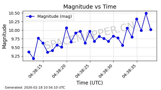 | STARLINK-32381 | 61066 | 61066 | 2024-09-13 同日期轨道 2024-164S 同批次轨道 | 在轨 | 94分钟 | 53.1595 | 474.318 | 476.188 | 0.0001363 | 2026-02-16 18:50:14 | ||