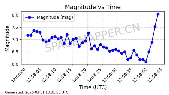 | STARLINK-11747 | 64322 | 64322 | 2025-06-10 同日期轨道 2025-124F 同批次轨道 | 在轨 | 92分钟 | 43.0010 | 354.551 | 357.883 | 0.0002473 | 2026-04-05 17:06:26 | ![]() | |