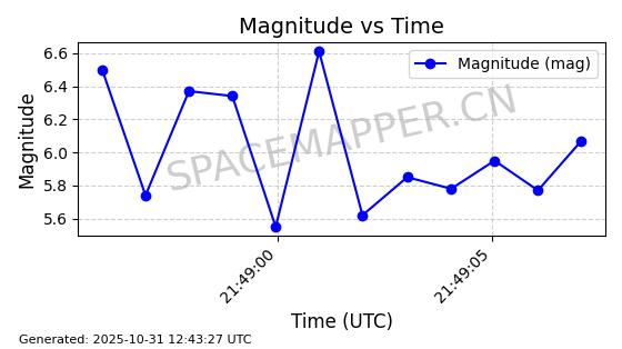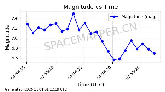 | STARLINK-32543 | 63364 | 63364 | 2025-03-26 同日期轨道 2025-063B 同批次轨道 | 在轨 | 94分钟 | 53.1602 | 446.064 | 448.442 | 0.0001742 | 2025-10-31 06:07:42 |  | |