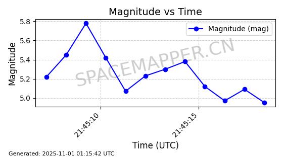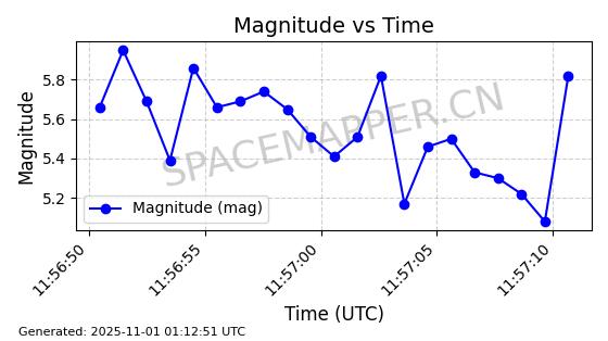| STARLINK-32423 | 61218 | 61218 | 2024-09-20 同日期轨道 2024-171U 同批次轨道 | 在轨 | 94分钟 | 53.1605 | 474.329 | 476.265 | 0.0001412 | 2025-10-31 00:12:59 |  | |