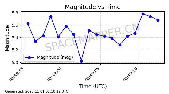 | STARLINK-32590 | 63047 | 63047 | 2025-02-18 同日期轨道 2025-034U 同批次轨道 | 在轨 | 94分钟 | 53.1590 | 474.219 | 476.111 | 0.0001380 | 2025-10-30 13:39:22 |  | |