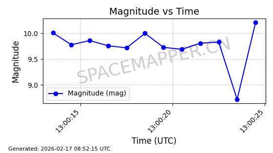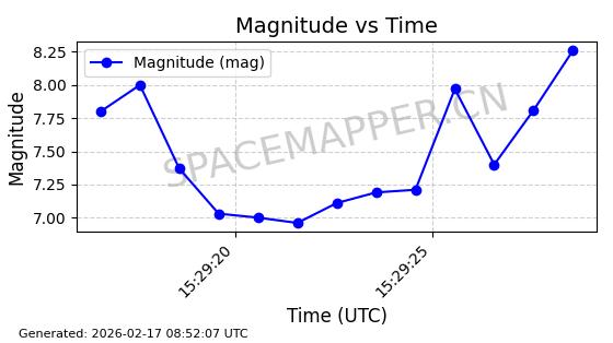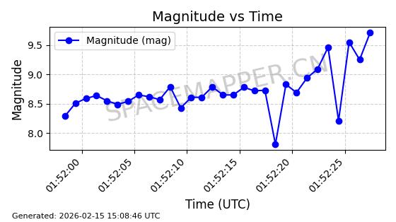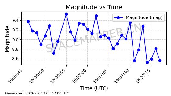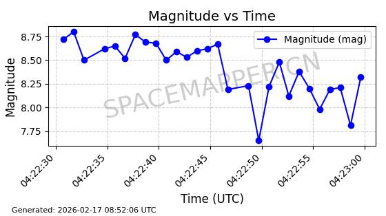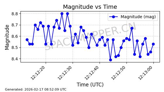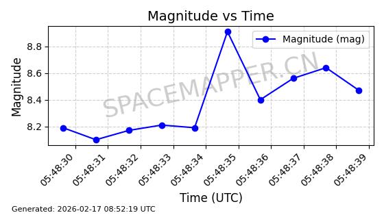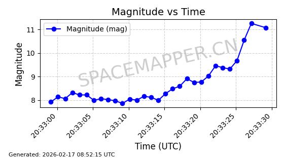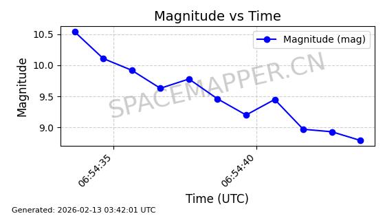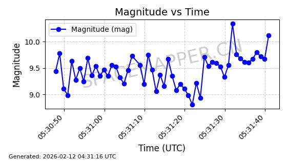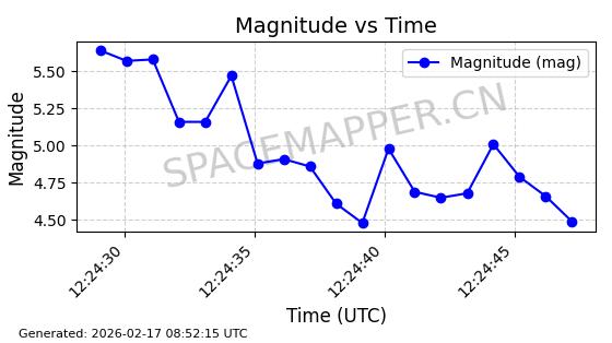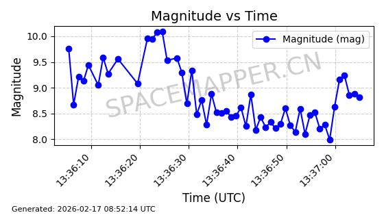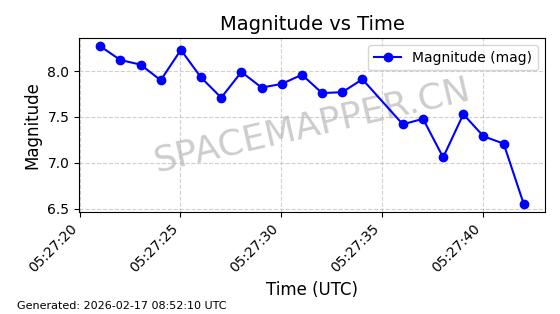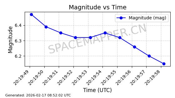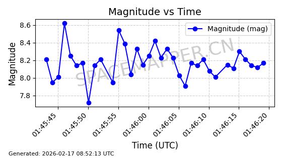 | STARLINK-1769 | 46382 | 46382 | 2020-09-03 同日期轨道 2020-062BK 同批次轨道 | 已陨落 | 87分钟 | 53.0173 | 140.147 | 141.941 | 0.0001375 | 2026-02-15 07:22:54 | ||