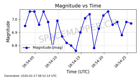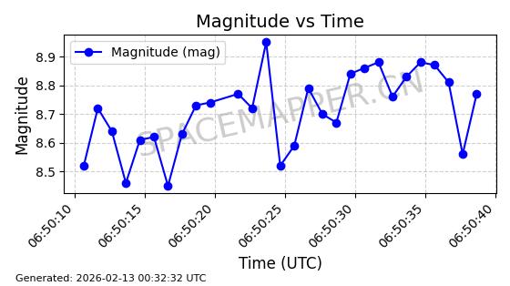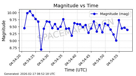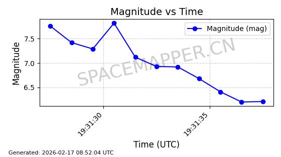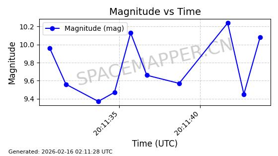 | STARLINK-1671 | 46554 | 46554 | 2020-10-06 同日期轨道 2020-070Y 同批次轨道 | 已陨落 | 87分钟 | 53.0141 | 143.441 | 153.873 | 0.0007991 | 2025-02-20 23:26:21 | ||
