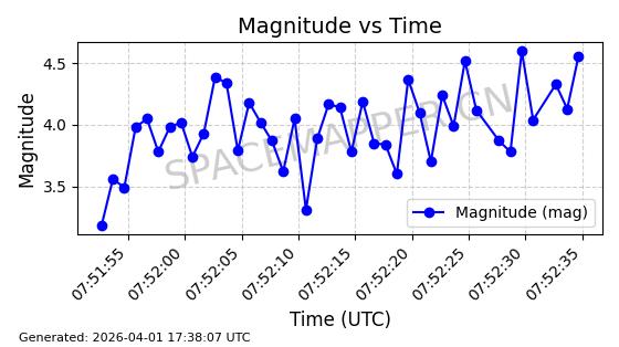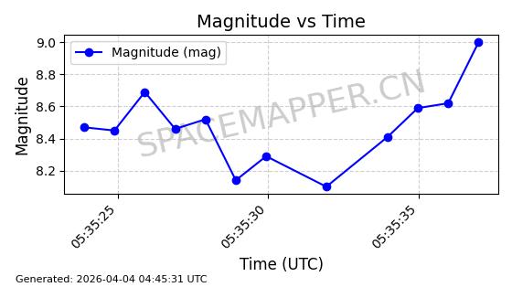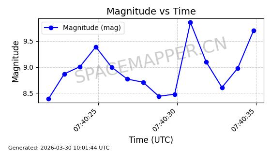 | 卫星名称 | AOE ID | NORAD ID | 发射日期 国际编号 | 在轨状态 | 轨道周期 | 轨道倾角 (度) | 近地点 (Km) | 远地点 (Km) | 偏心率 | 更新时间 (UTC) | 近期光变曲线 | 服务 |