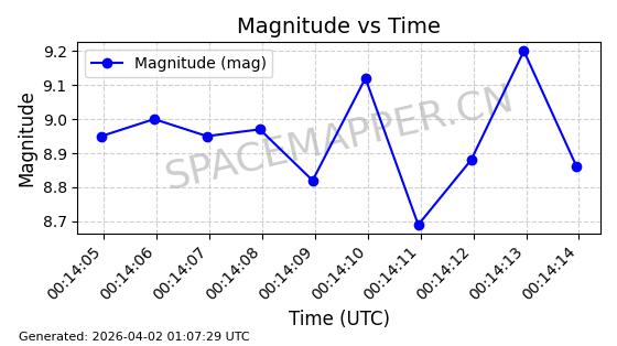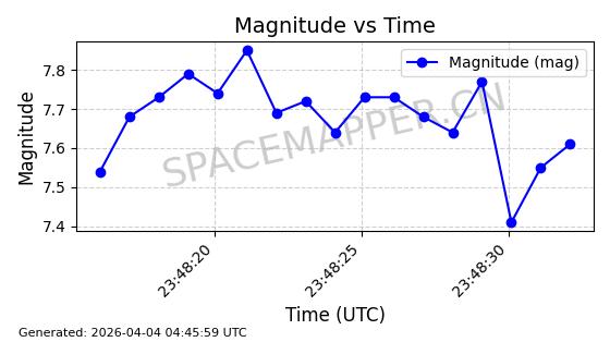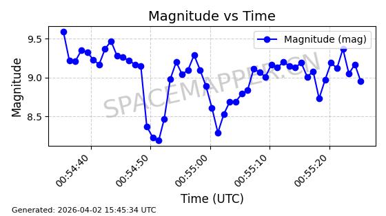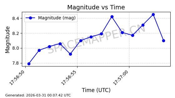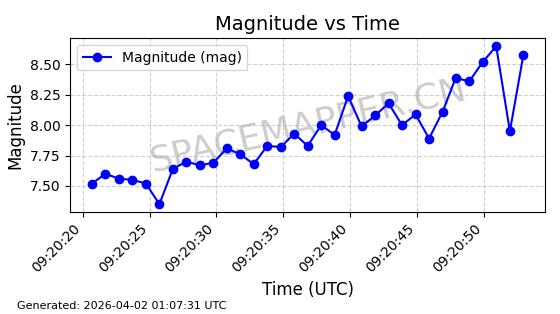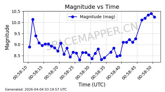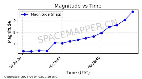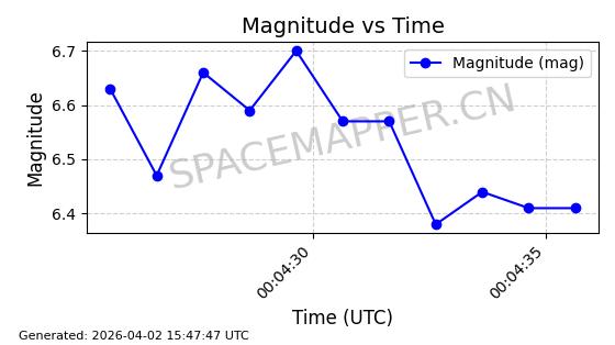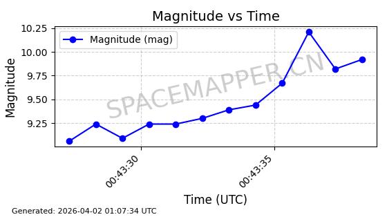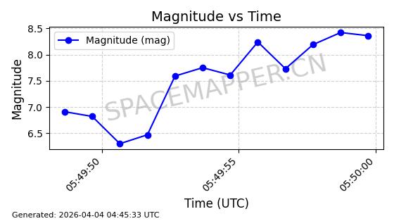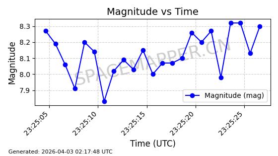 | STARLINK-1648 | 46533 | 46533 | 2020-10-06 同日期轨道 2020-070B 同批次轨道 | 已陨落 | 88分钟 | 53.0282 | 159.087 | 166.845 | 0.0005930 | 2026-03-30 07:24:04 | ||