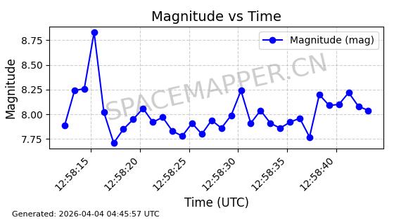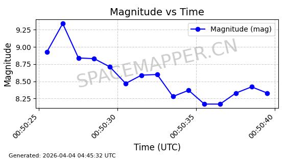 | STARLINK-1640 | 46173 | 46173 | 2020-08-18 同日期轨道 2020-057BJ 同批次轨道 | 在轨 | 92分钟 | 53.0478 | 387.401 | 393.333 | 0.0004381 | 2026-04-03 05:44:51 | ||