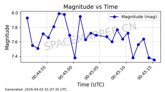 | STARLINK-1608 | 46146 | 46146 | 2020-08-18 同日期轨道 2020-057AF 同批次轨道 | 在轨 | 94分钟 | 53.1600 | 474.102 | 476.254 | 0.0001569 | 2026-04-03 00:08:29 | ||