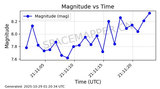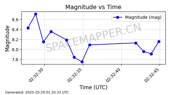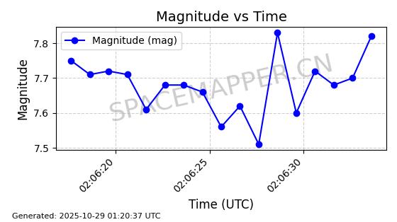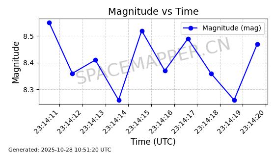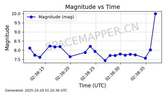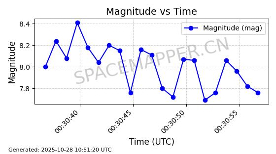| ONEWEB-0062 | 45163 | 45163 | 2020-02-06 同日期轨道 2020-008AJ 同批次轨道 | 在轨 | 110分钟 | 87.8766 | 1220.242 | 1223.23 | 0.0001965 | 2025-10-27 22:52:55 | ||