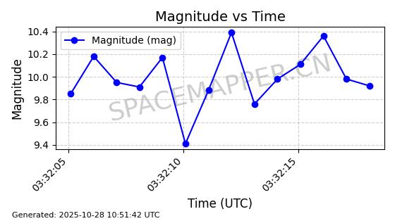 | ONEWEB-0027 | 45432 | 45432 | 2020-03-21 同日期轨道 2020-020J 同批次轨道 | 在轨 | 109分钟 | 87.9124 | 1192.179 | 1195.249 | 0.0002026 | 2025-10-27 20:45:58 | ||