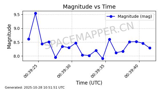 | ONEWEB-0087 | 45451 | 45451 | 2020-03-21 同日期轨道 2020-020AD 同批次轨道 | 在轨 | 110分钟 | 87.8851 | 1216.578 | 1218.772 | 0.0001443 | 2025-10-27 20:38:40 | ||