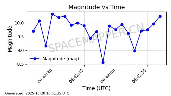 | ONEWEB-0118 | 47264 | 47264 | 2020-12-18 同日期轨道 2020-100G 同批次轨道 | 在轨 | 110分钟 | 87.8970 | 1212.41 | 1215.06 | 0.0001744 | 2025-10-27 17:33:18 | ||