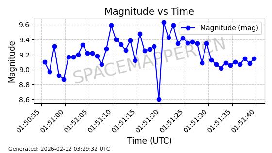 | ONEWEB-0051 | 45155 | 45155 | 2020-02-06 同日期轨道 2020-008AA 同批次轨道 | 在轨 | 110分钟 | 87.8830 | 1216.314 | 1219.06 | 0.0001807 | 2026-02-16 05:33:28 | ||