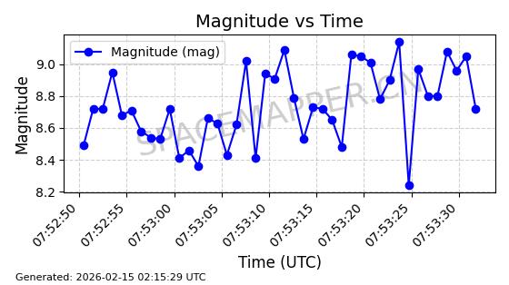 | ONEWEB-0133 | 47279 | 47279 | 2020-12-18 同日期轨道 2020-100X 同批次轨道 | 在轨 | 110分钟 | 87.8972 | 1212.426 | 1215.014 | 0.0001704 | 2026-02-15 22:31:48 | ||