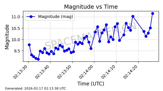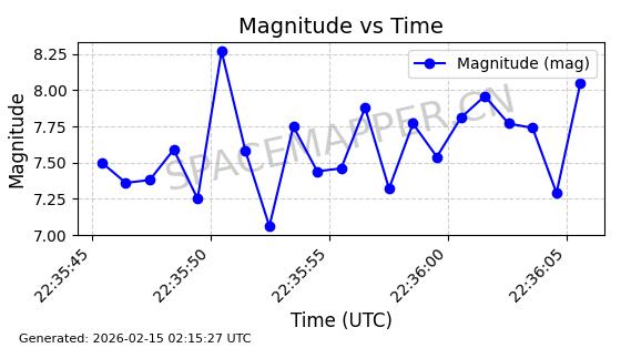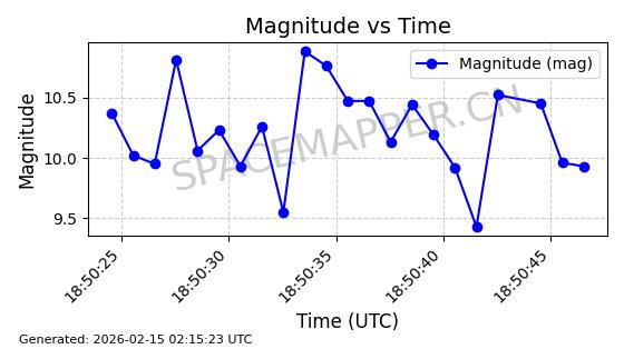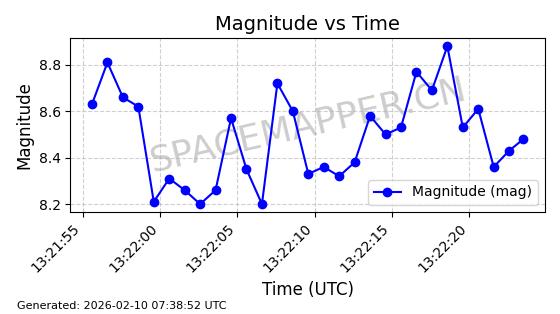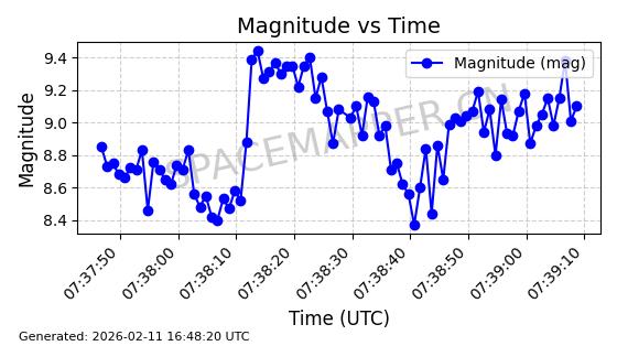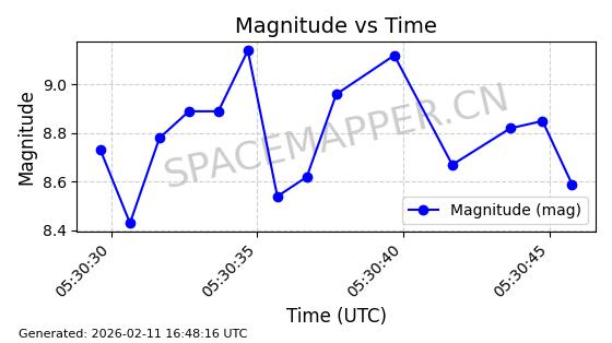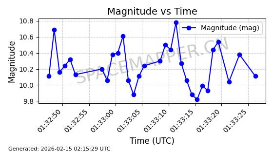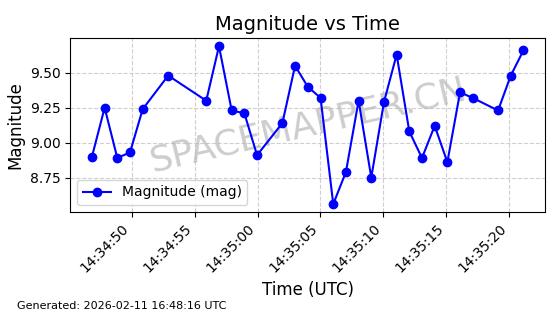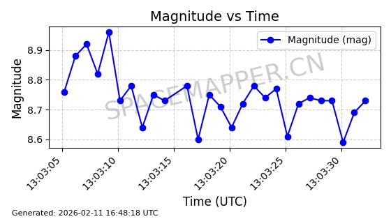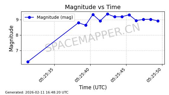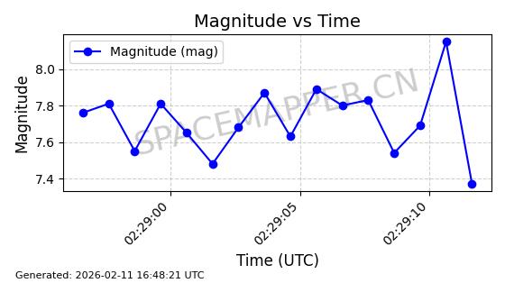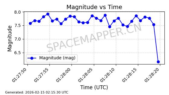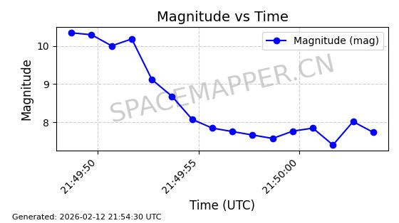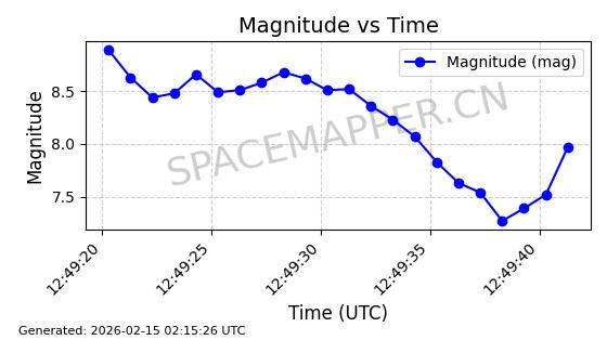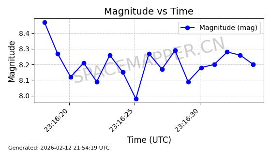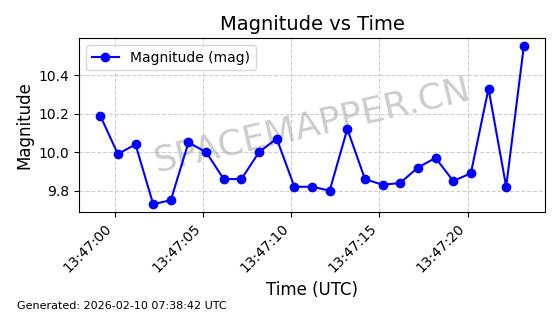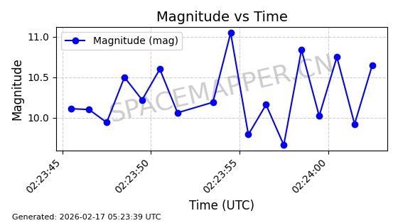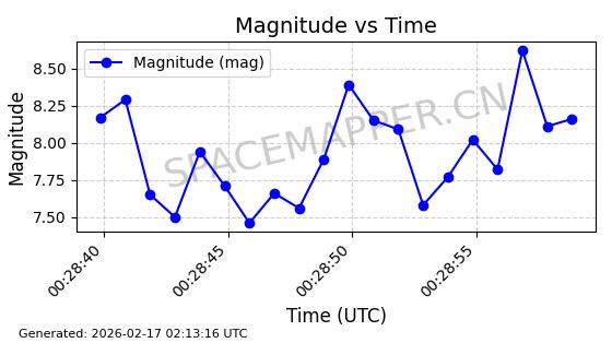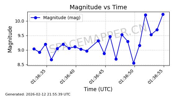 | ONEWEB-0126 | 47272 | 47272 | 2020-12-18 同日期轨道 2020-100Q 同批次轨道 | 在轨 | 110分钟 | 87.8976 | 1212.228 | 1215.212 | 0.0001965 | 2026-02-16 06:47:27 | ||