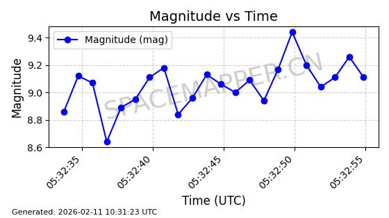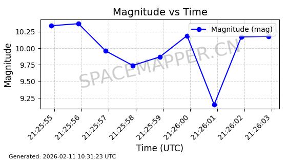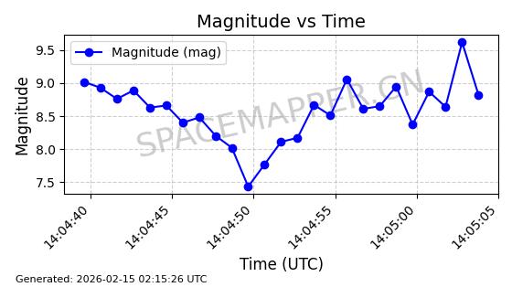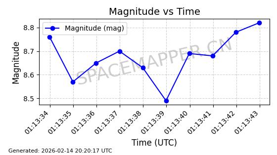 | ONEWEB-0026 | 45139 | 45139 | 2020-02-06 同日期轨道 2020-008J 同批次轨道 | 在轨 | 110分钟 | 87.8828 | 1216.195 | 1219.181 | 0.0001965 | 2026-02-15 23:58:59 | ||