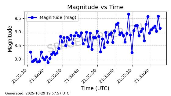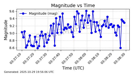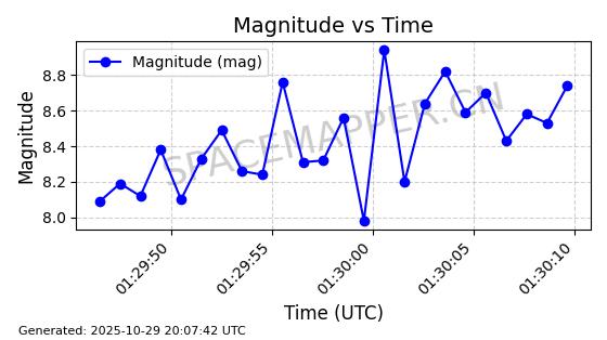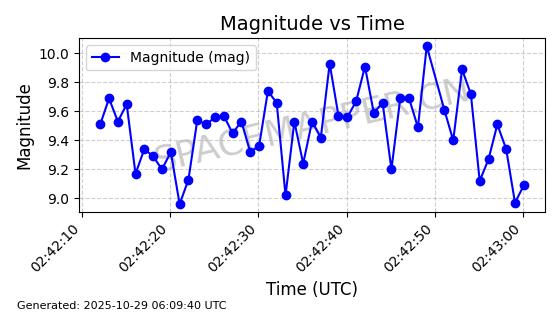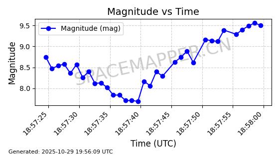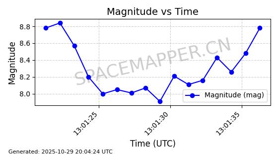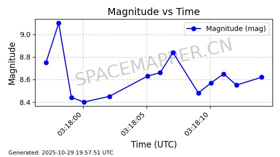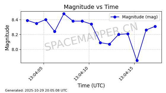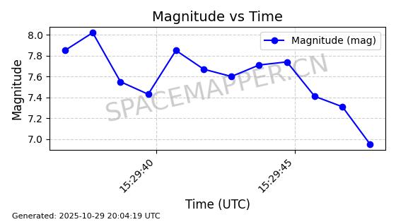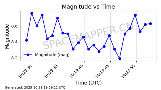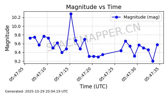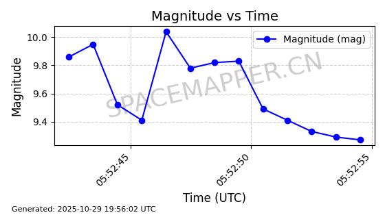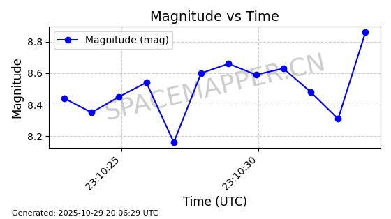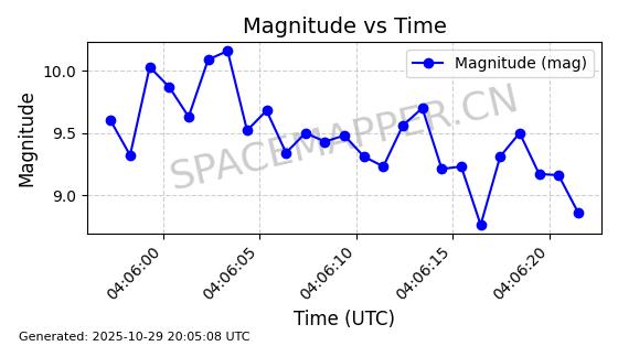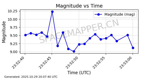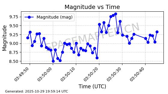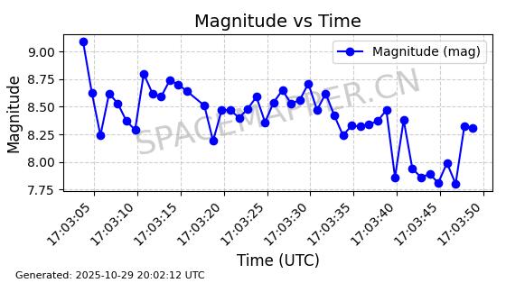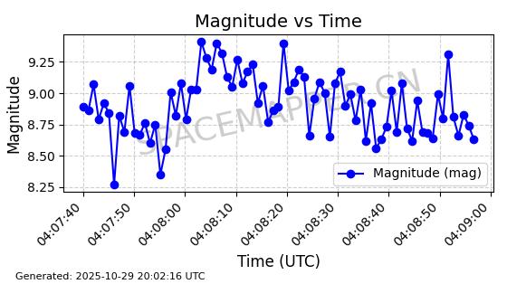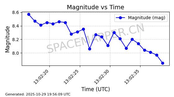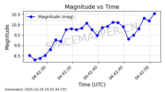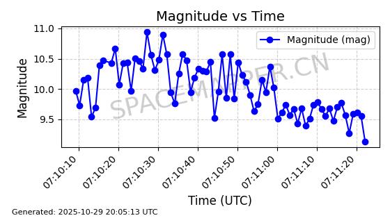 | ONEWEB-0229 | 48779 | 48779 | 2021-05-28 同日期轨道 2021-045N 同批次轨道 | 在轨 | 109分钟 | 87.8957 | 1200.411 | 1203.129 | 0.0001792 | 2025-10-28 11:12:45 | ||