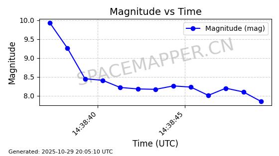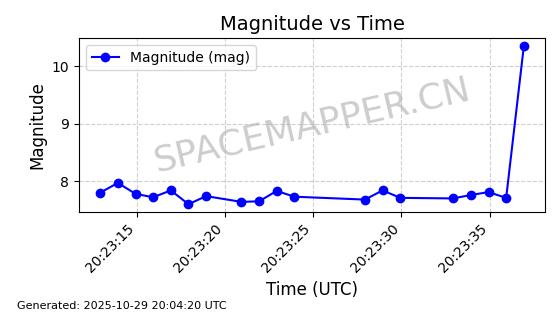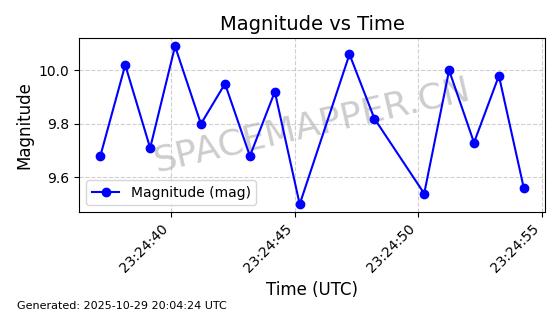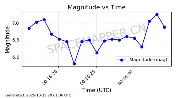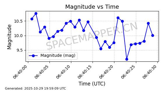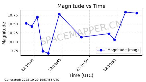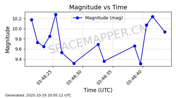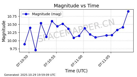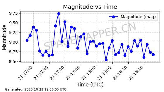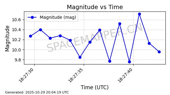| ONEWEB-0214 | 48788 | 48788 | 2021-05-28 同日期轨道 2021-045X 同批次轨道 | 在轨 | 109分钟 | 87.8969 | 1200.526 | 1203.02 | 0.0001644 | 2025-10-28 11:45:51 | ||