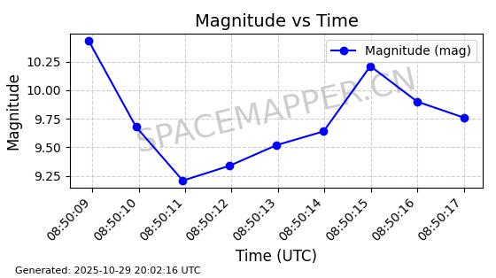 | ONEWEB-0210 | 48787 | 48787 | 2021-05-28 同日期轨道 2021-045W 同批次轨道 | 在轨 | 109分钟 | 87.8970 | 1200.366 | 1203.18 | 0.0001856 | 2025-10-28 11:33:18 | ||