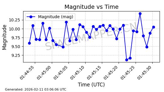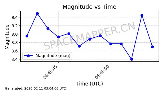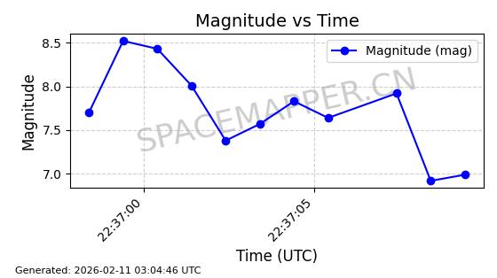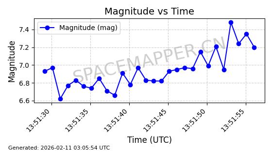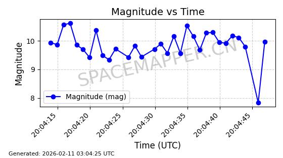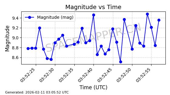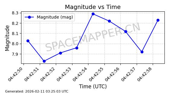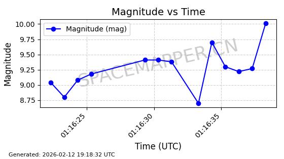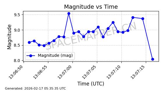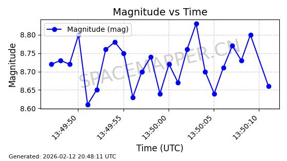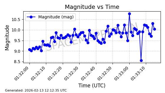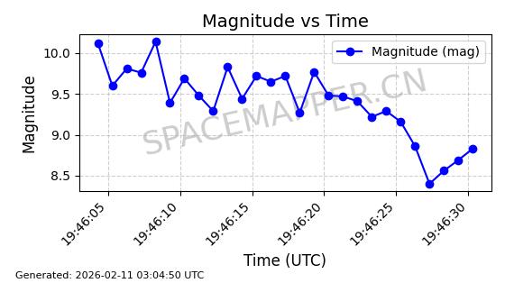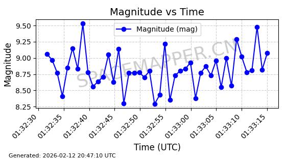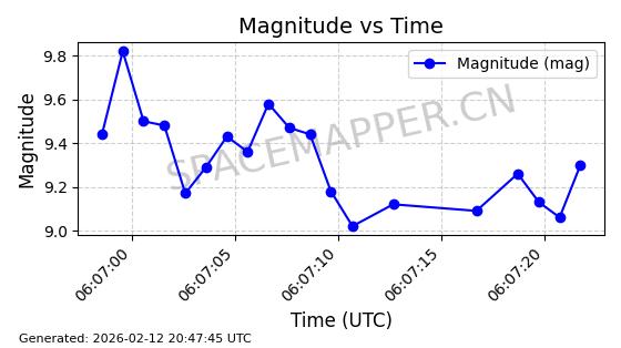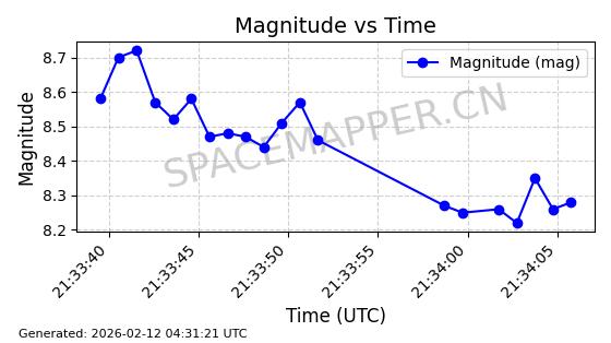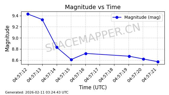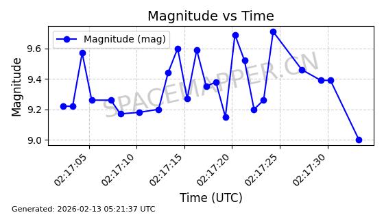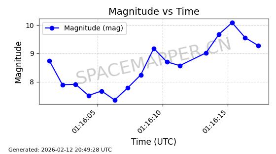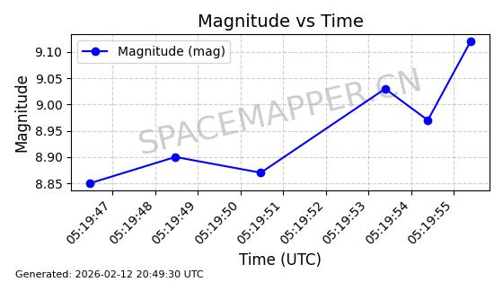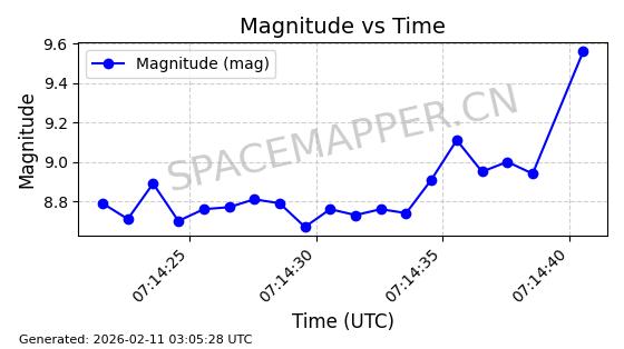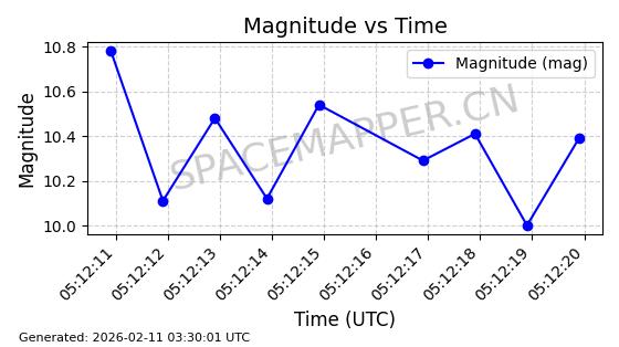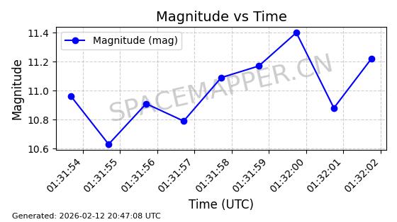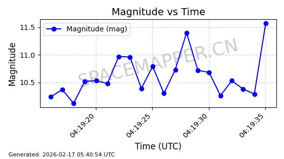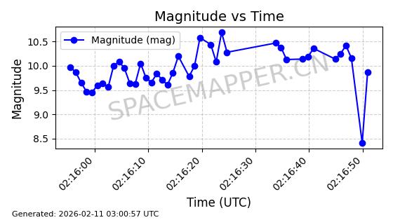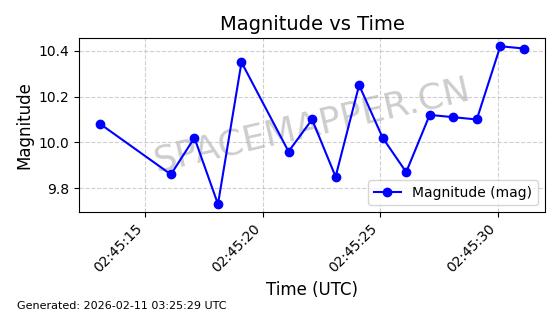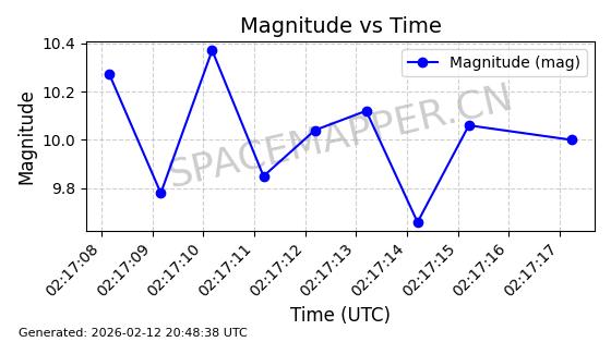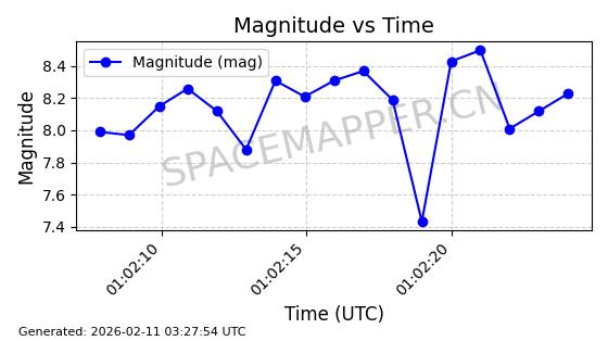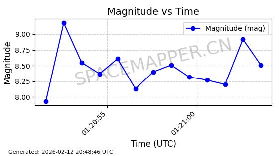 | ONEWEB-0263 | 48981 | 48981 | 2021-07-01 同日期轨道 2021-060Q 同批次轨道 | 在轨 | 109分钟 | 87.8998 | 1196.667 | 1198.843 | 0.0001435 | 2026-02-16 02:00:51 | ||