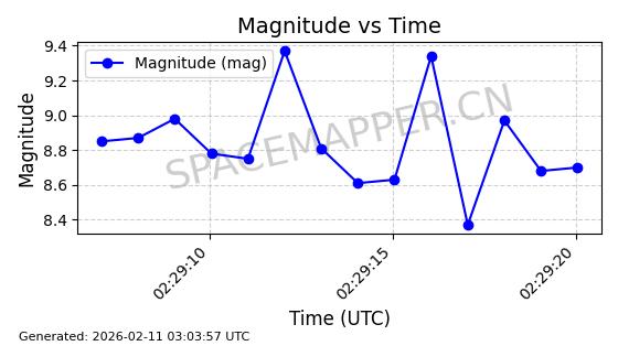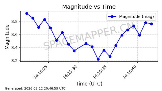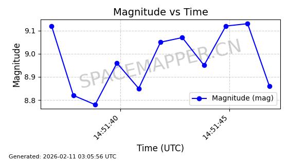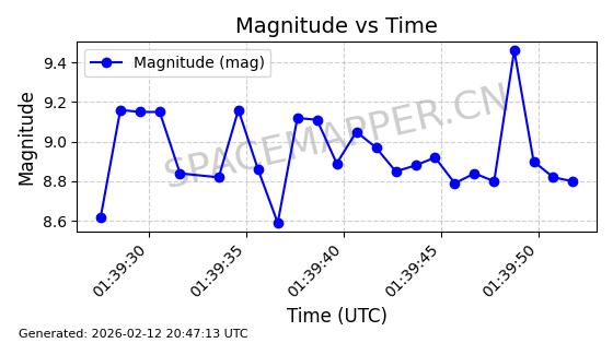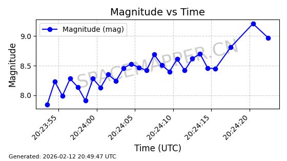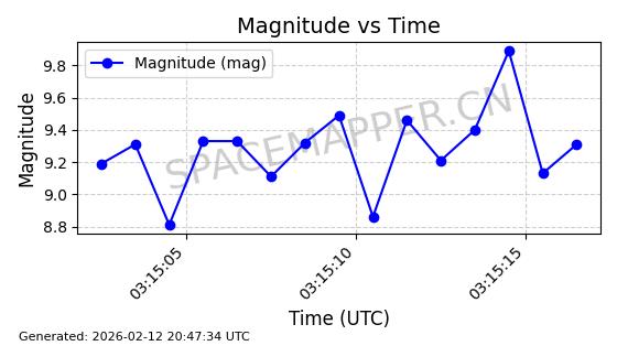 | ONEWEB-0329 | 49107 | 49107 | 2021-08-21 同日期轨道 2021-075AJ 同批次轨道 | 在轨 | 109分钟 | 87.9112 | 1192.157 | 1195.283 | 0.0002064 | 2026-02-15 23:42:18 | ||
