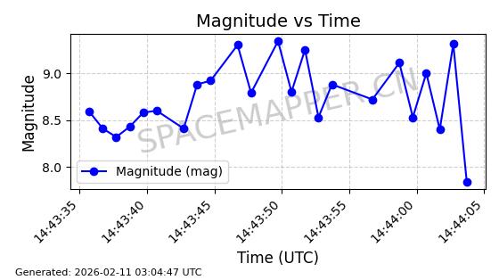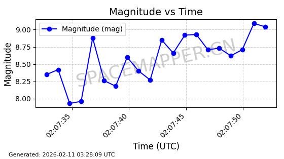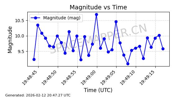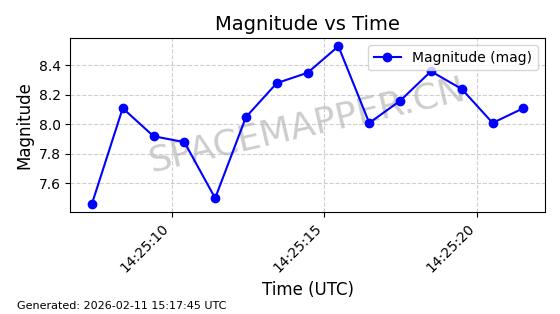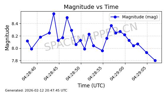 | ONEWEB-0300 | 49089 | 49089 | 2021-08-21 同日期轨道 2021-075Q 同批次轨道 | 在轨 | 110分钟 | 87.8975 | 1212.466 | 1214.99 | 0.0001661 | 2026-02-15 23:07:23 | ||
