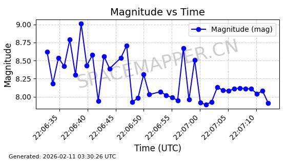 | ONEWEB-0314 | 49100 | 49100 | 2021-08-21 同日期轨道 2021-075AB 同批次轨道 | 在轨 | 109分钟 | 87.9120 | 1191.96 | 1195.466 | 0.0002315 | 2026-02-15 23:08:18 | ||