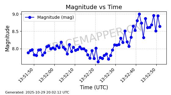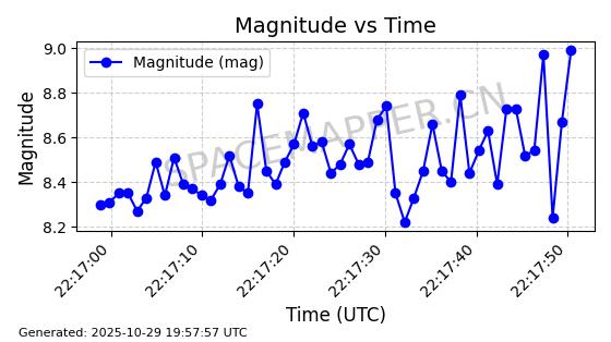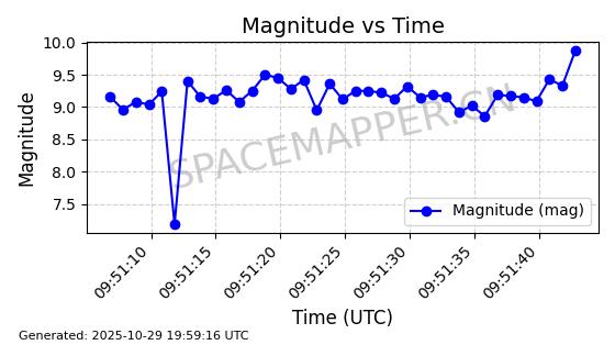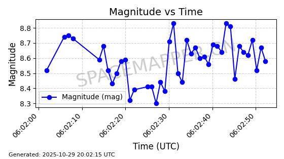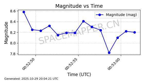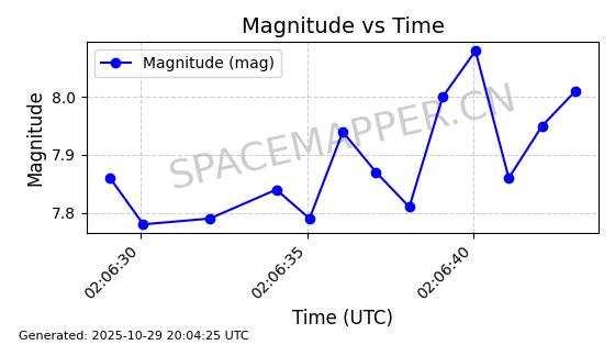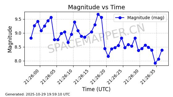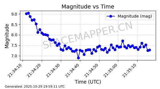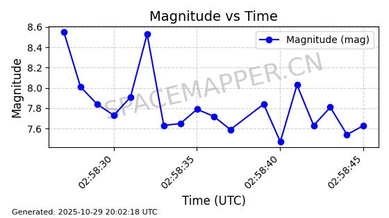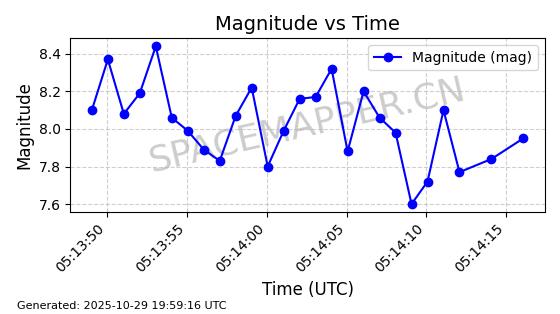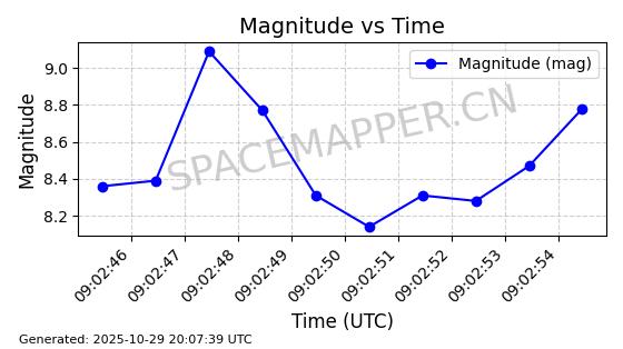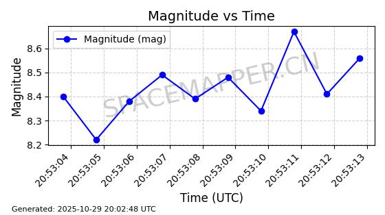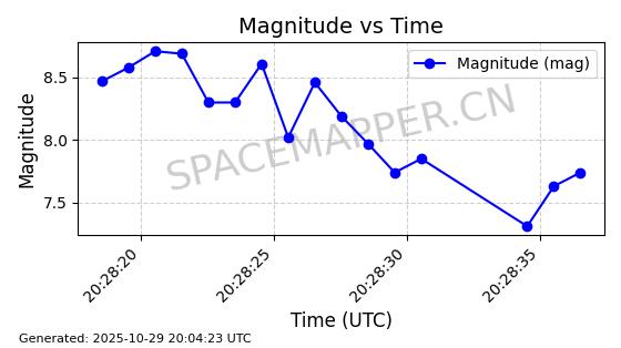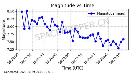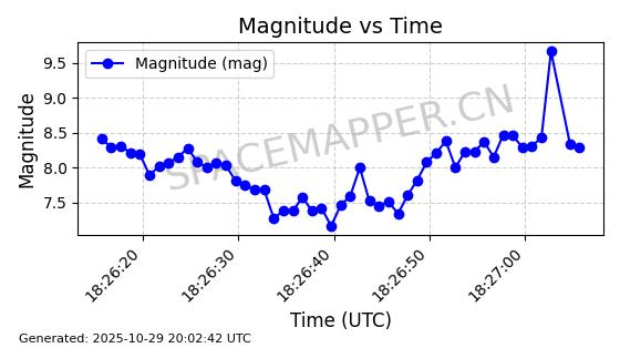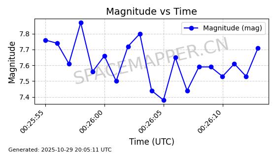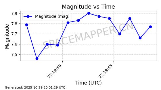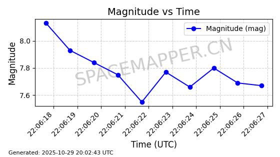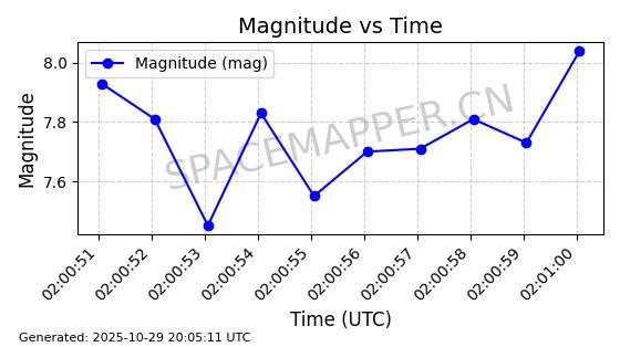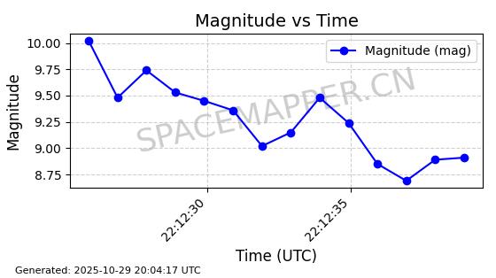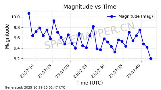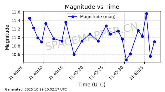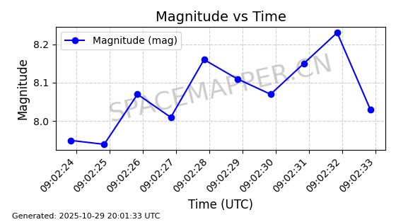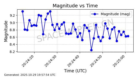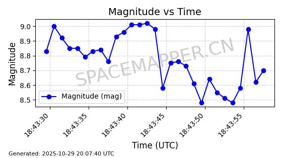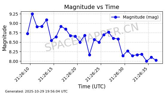 | ONEWEB-0509 | 54127 | 54127 | 2022-10-22 同日期轨道 2022-138Q 同批次轨道 | 在轨 | 109分钟 | 87.9255 | 1184.334 | 1187.216 | 0.0001905 | 2025-10-28 09:29:59 | ||