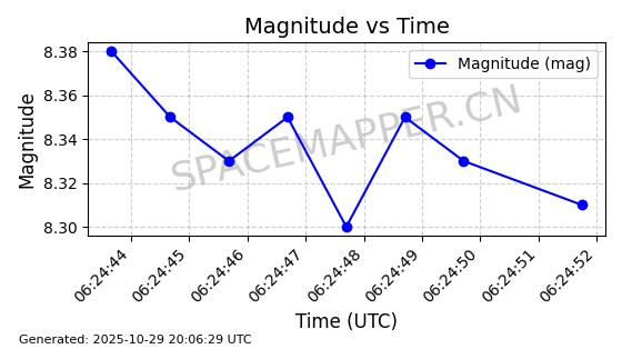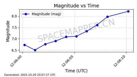 | ONEWEB-0611 | 54674 | 54674 | 2022-12-08 同日期轨道 2022-166AJ 同批次轨道 | 在轨 | 109分钟 | 87.9169 | 1176.182 | 1179.33 | 0.0002083 | 2025-10-28 11:24:46 | ||