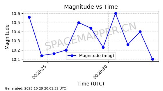 | ONEWEB-0529 | 54145 | 54145 | 2022-10-22 同日期轨道 2022-138AJ 同批次轨道 | 在轨 | 109分钟 | 87.9231 | 1184.254 | 1187.292 | 0.0002007 | 2025-10-28 13:51:33 | ||