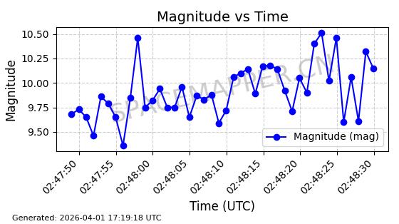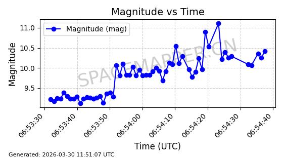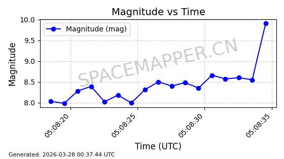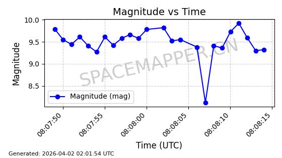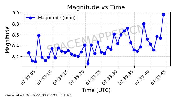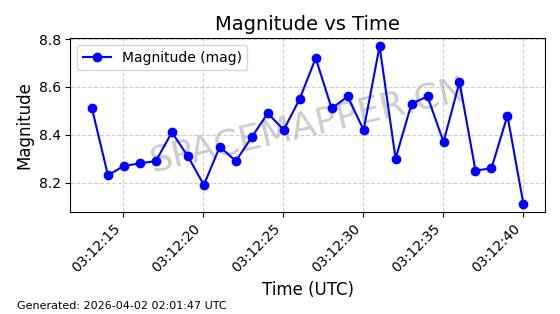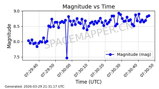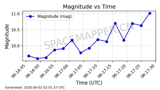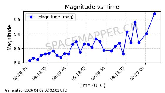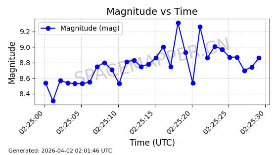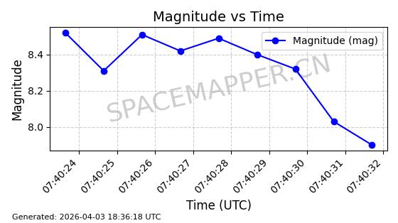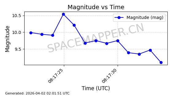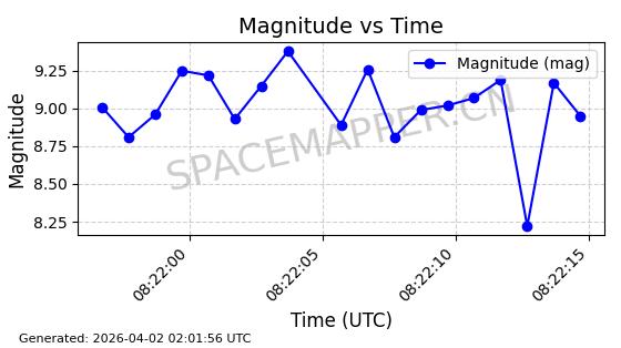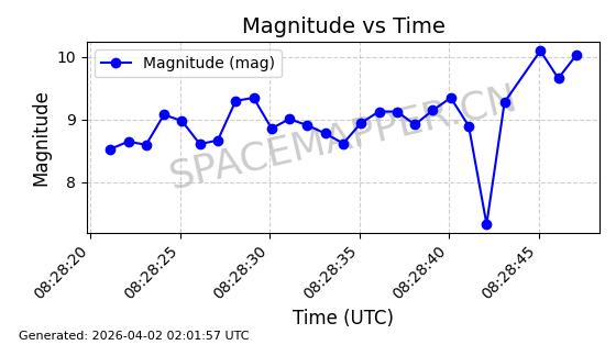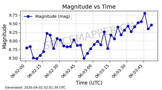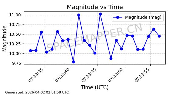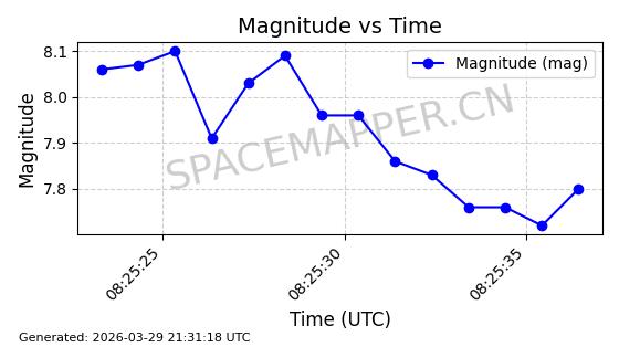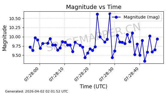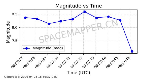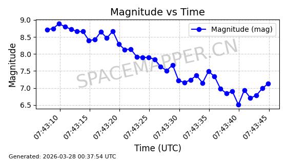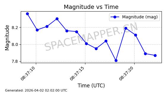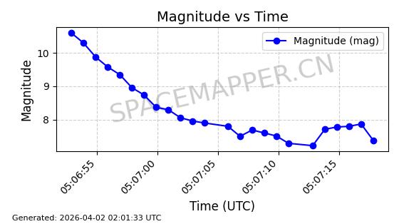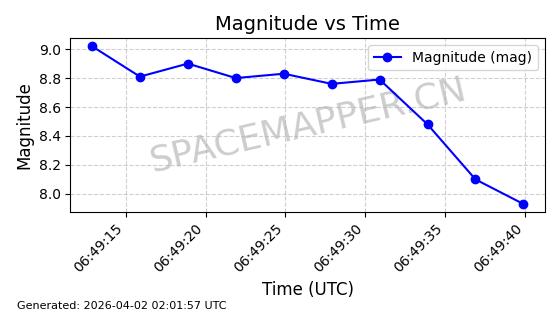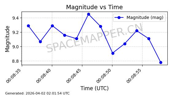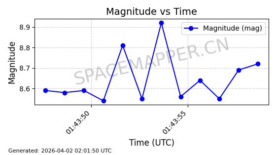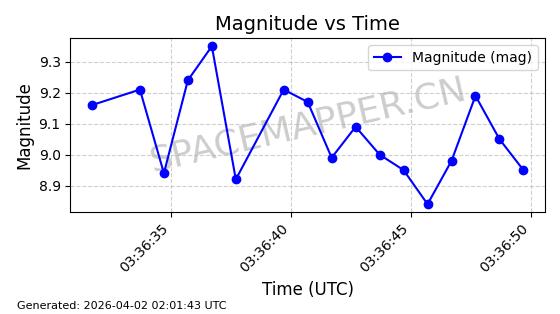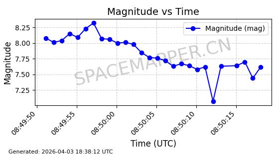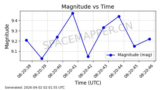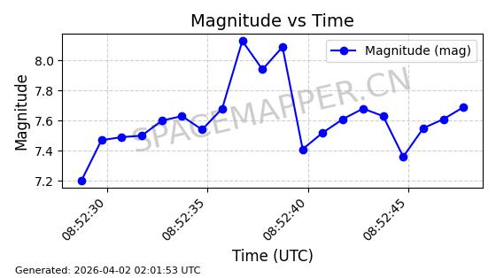 | ONEWEB-0608 | 54672 | 54672 | 2022-12-08 同日期轨道 2022-166AG 同批次轨道 | 在轨 | 109分钟 | 87.9187 | 1176.698 | 1178.808 | 0.0001395 | 2026-04-02 23:11:33 | ||