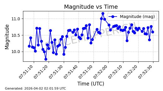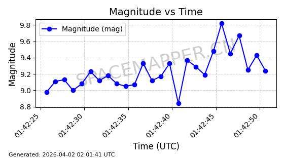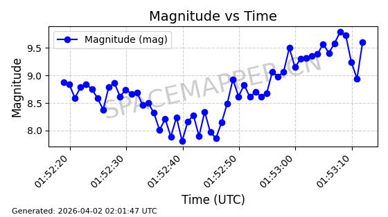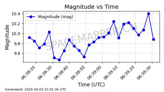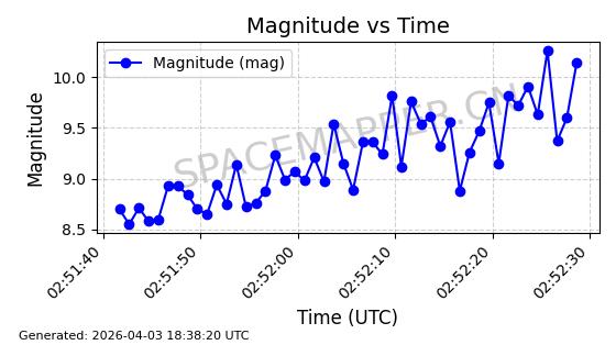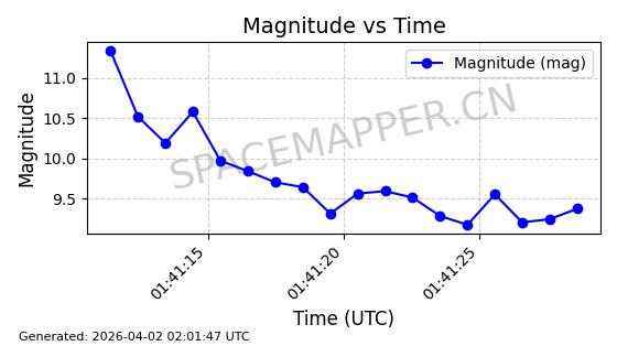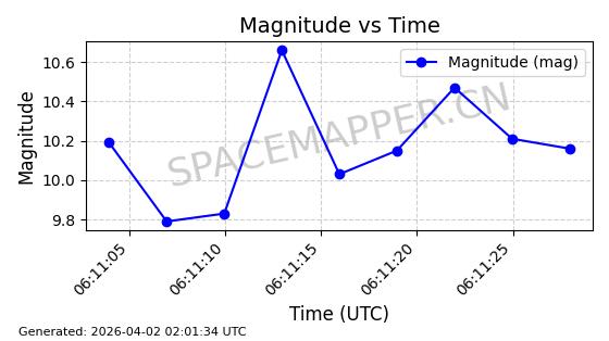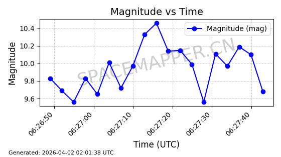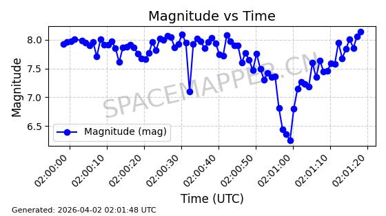 | ONEWEB-0512 | 54130 | 54130 | 2022-10-22 同日期轨道 2022-138T 同批次轨道 | 在轨 | 109分钟 | 87.9185 | 1184.271 | 1187.267 | 0.0001980 | 2026-04-03 04:10:23 | ||