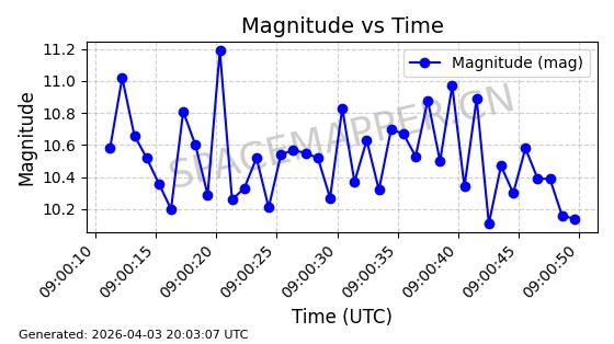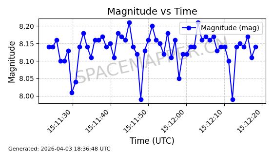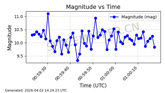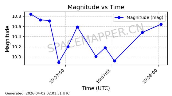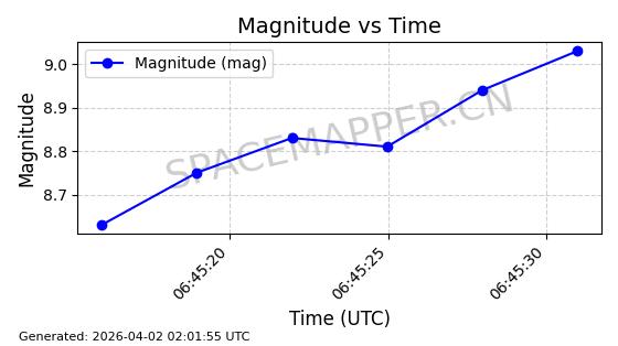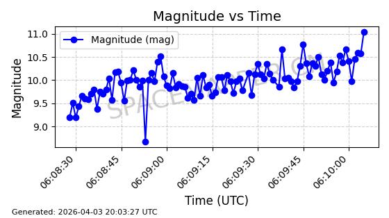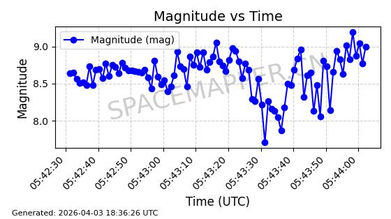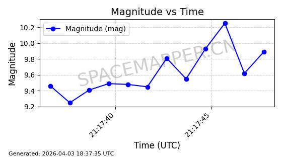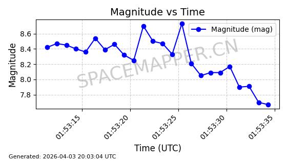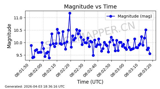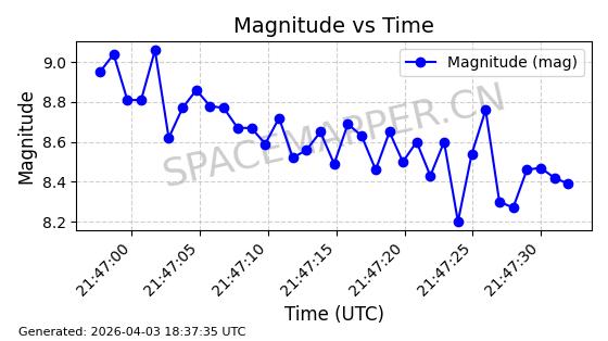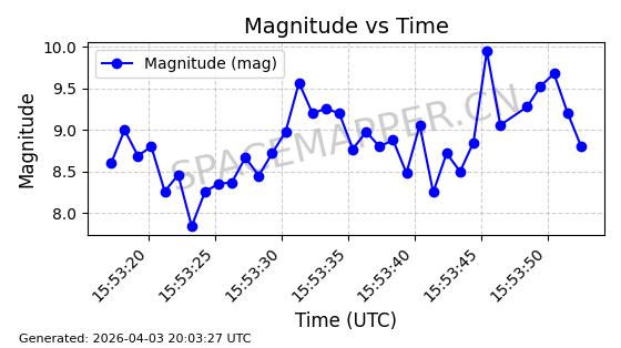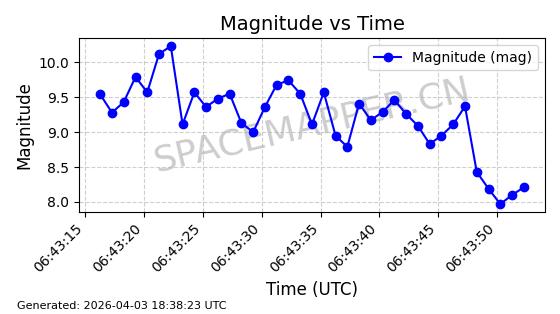 | ONEWEB-0517 | 54135 | 54135 | 2022-10-22 同日期轨道 2022-138Y 同批次轨道 | 在轨 | 109分钟 | 87.9187 | 1184.604 | 1186.928 | 0.0001535 | 2026-04-03 03:27:11 | ||