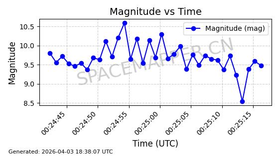 | ONEWEB-0519 | 54137 | 54137 | 2022-10-22 同日期轨道 2022-138AA 同批次轨道 | 在轨 | 109分钟 | 87.9199 | 1184.545 | 1186.977 | 0.0001607 | 2026-04-03 04:30:51 | ||