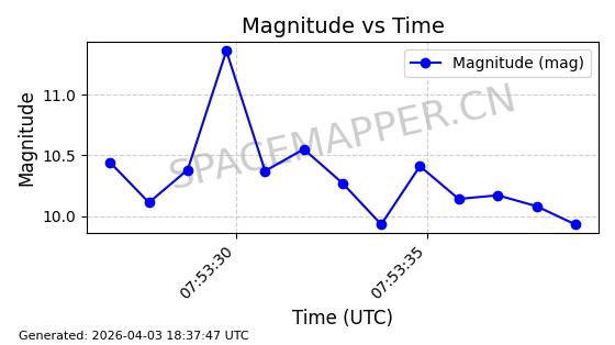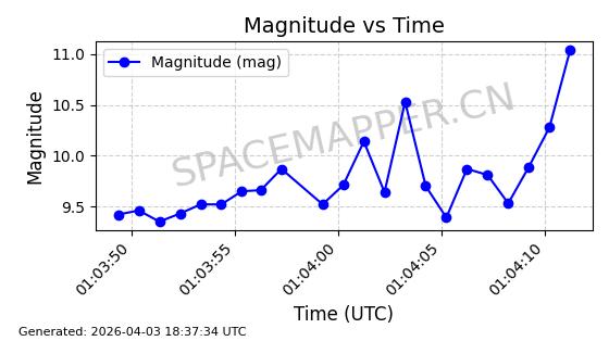 | ONEWEB-0611 | 54674 | 54674 | 2022-12-08 同日期轨道 2022-166AJ 同批次轨道 | 在轨 | 109分钟 | 87.9177 | 1176.069 | 1178.847 | 0.0001838 | 2026-04-03 04:00:27 | ||