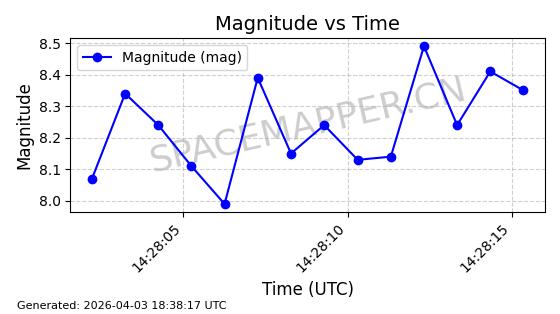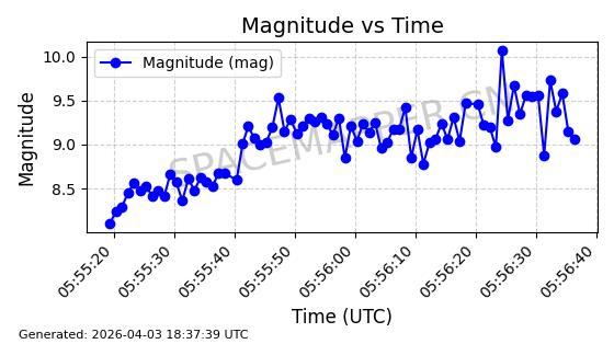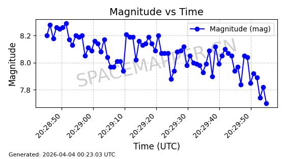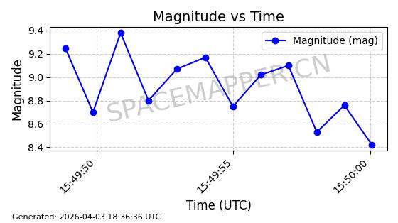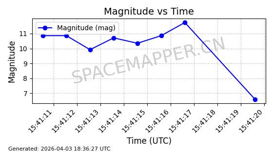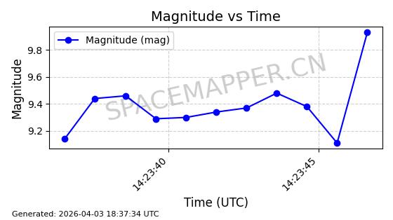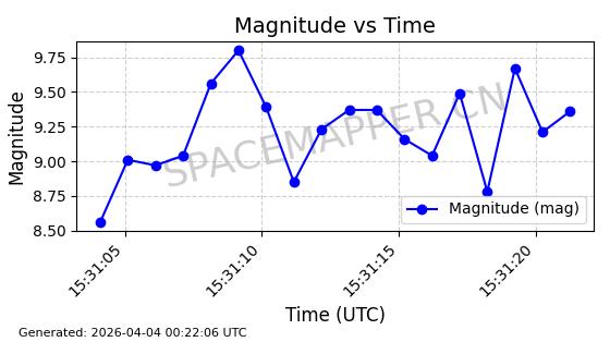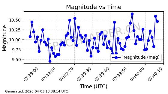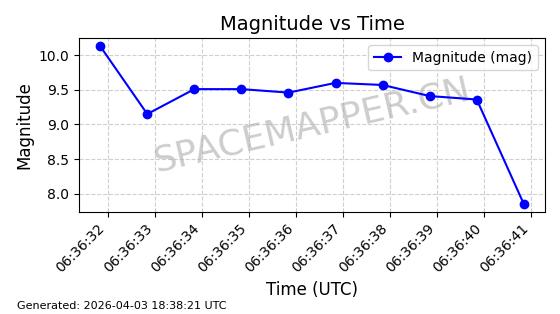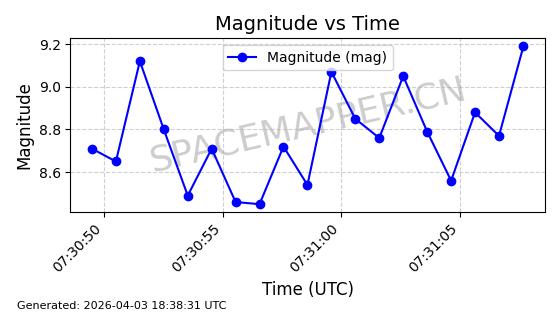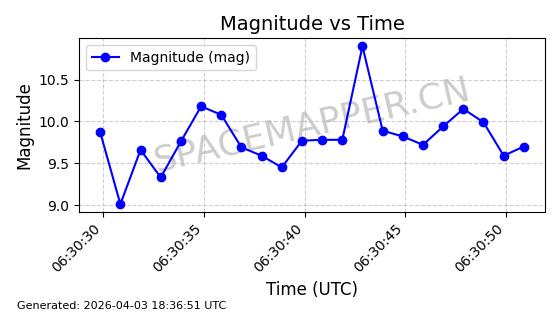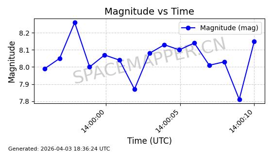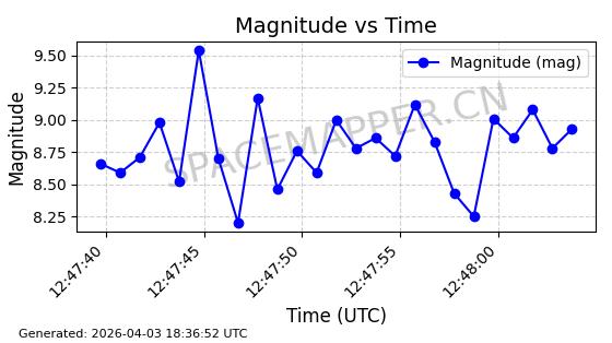 | ONEWEB-0523 | 54141 | 54141 | 2022-10-22 同日期轨道 2022-138AE 同批次轨道 | 在轨 | 109分钟 | 87.9143 | 1180.978 | 1182.57 | 0.0001052 | 2026-04-03 06:12:17 | ||