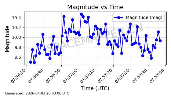 | ONEWEB-0583 | 54650 | 54650 | 2022-12-08 同日期轨道 2022-166J 同批次轨道 | 在轨 | 109分钟 | 87.9174 | 1176.642 | 1179.066 | 0.0001604 | 2026-04-03 04:52:51 | ||