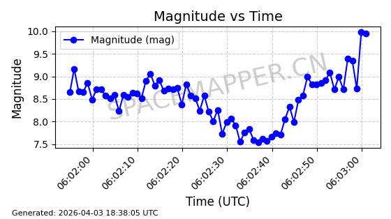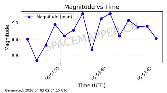 | ONEWEB-0509 | 54127 | 54127 | 2022-10-22 同日期轨道 2022-138Q 同批次轨道 | 在轨 | 109分钟 | 87.9196 | 1184.38 | 1187.142 | 0.0001825 | 2026-04-03 04:26:18 | ||
