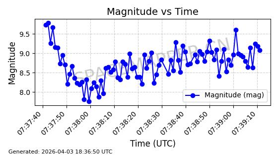 | ONEWEB-0612 | 54675 | 54675 | 2022-12-08 同日期轨道 2022-166AK 同批次轨道 | 在轨 | 109分钟 | 87.9186 | 1176.35 | 1178.91 | 0.0001694 | 2026-04-03 04:19:31 | ||