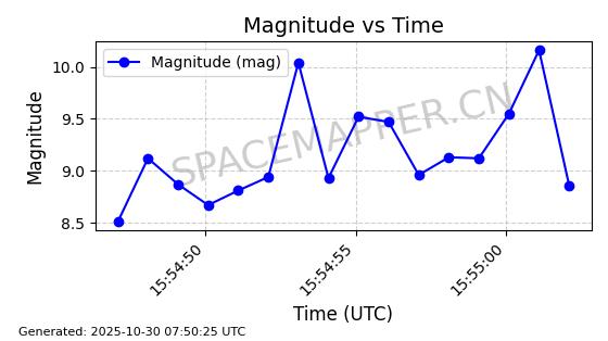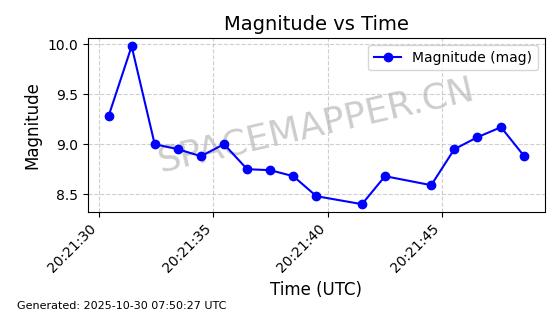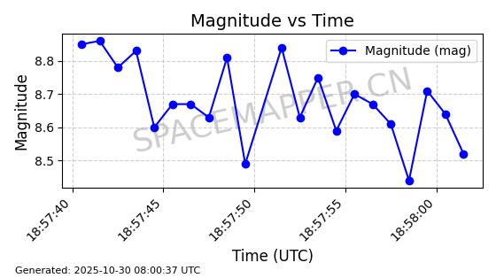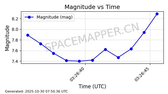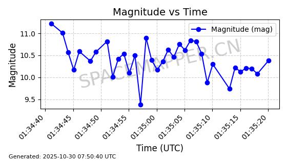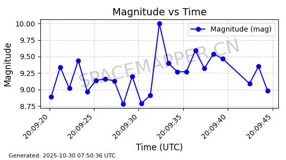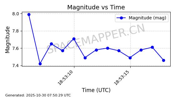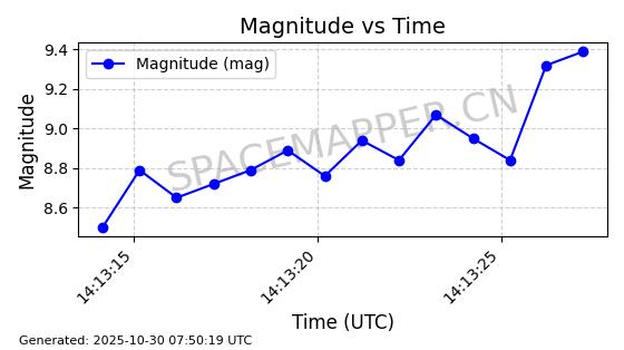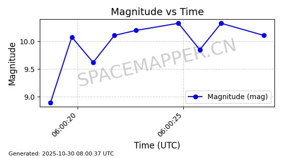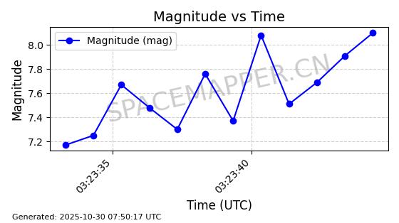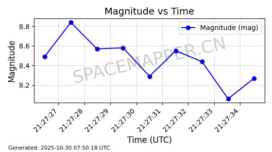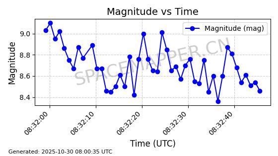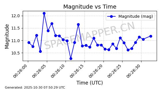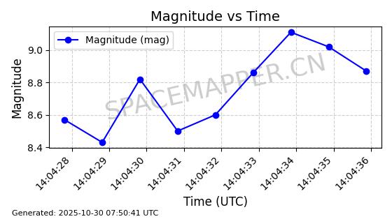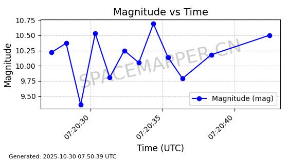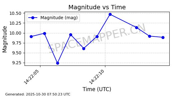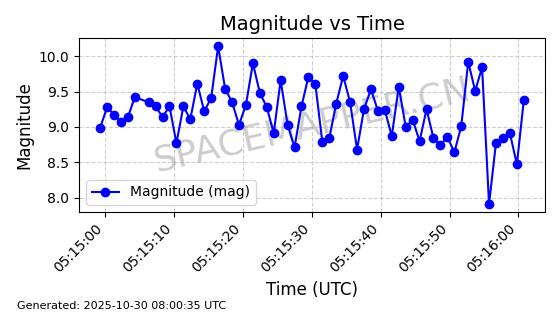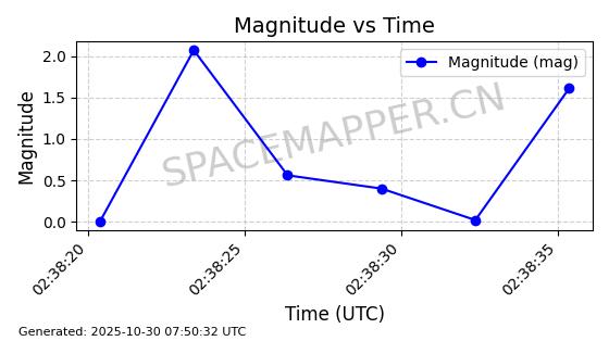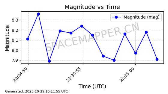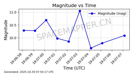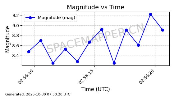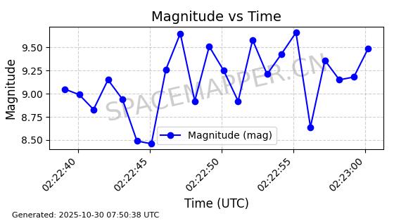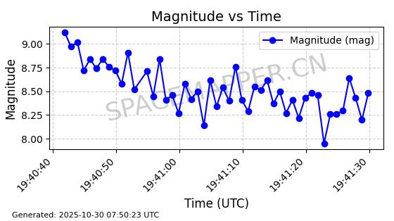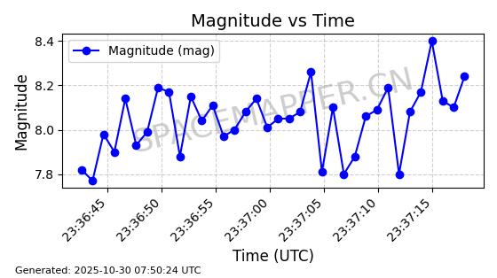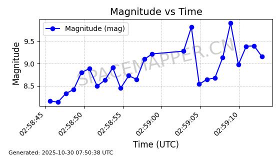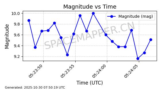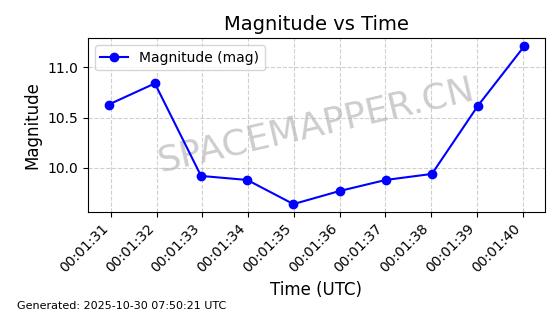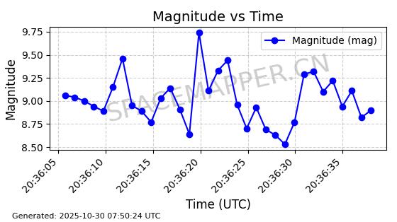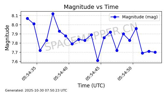 | ONEWEB-0629 | 55170 | 55170 | 2023-01-10 同日期轨道 2023-004AG 同批次轨道 | 在轨 | 109分钟 | 87.9114 | 1192.673 | 1194.773 | 0.0001386 | 2025-10-28 08:33:05 | ||