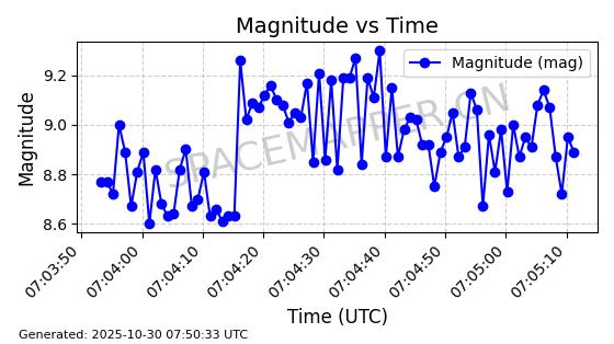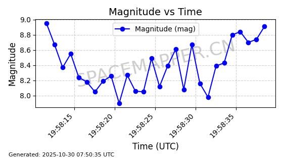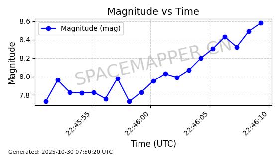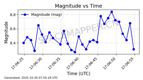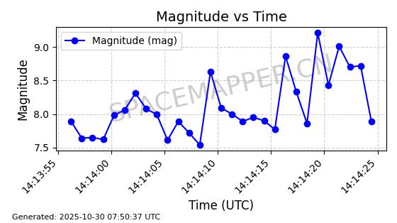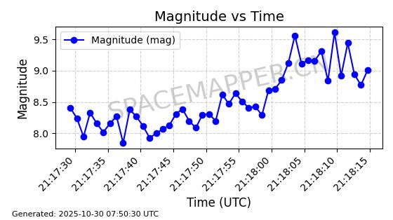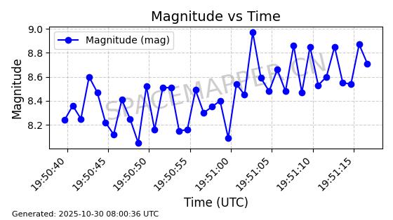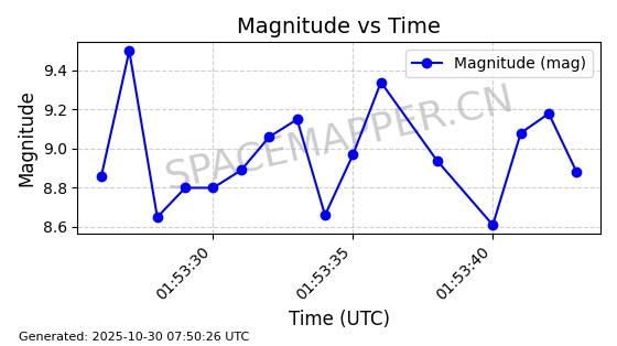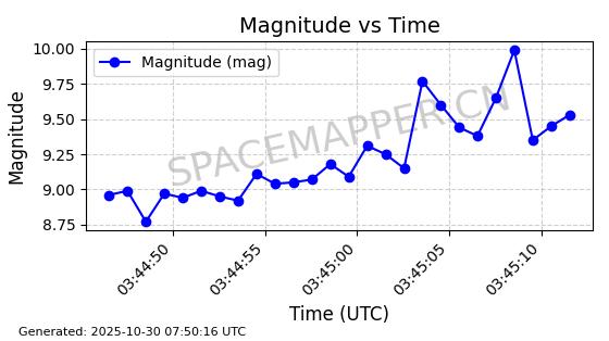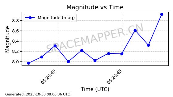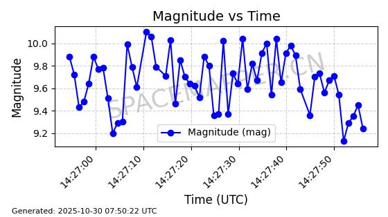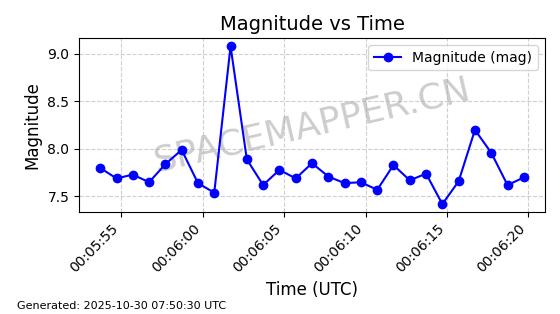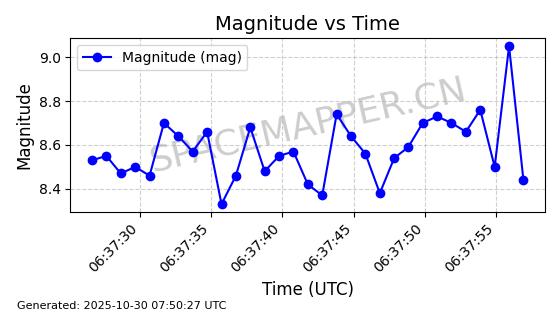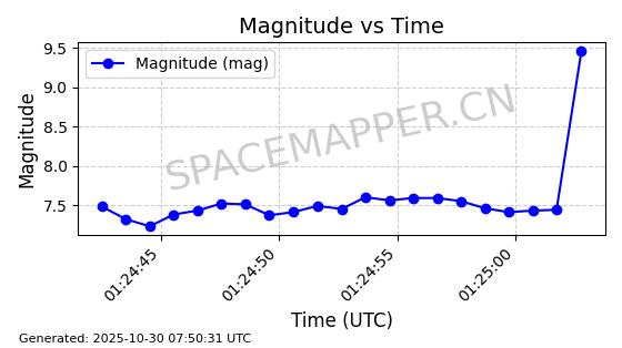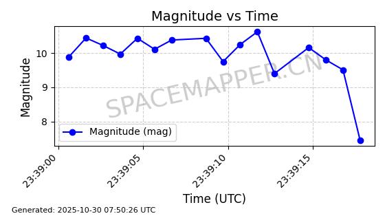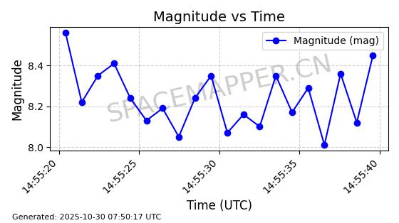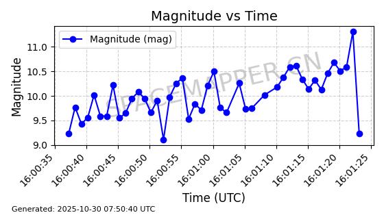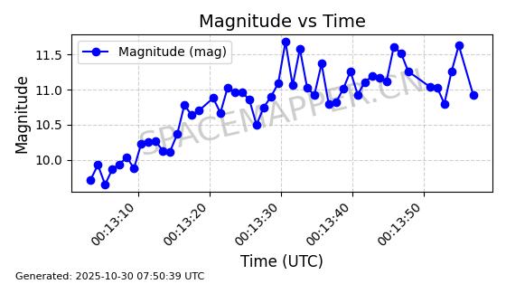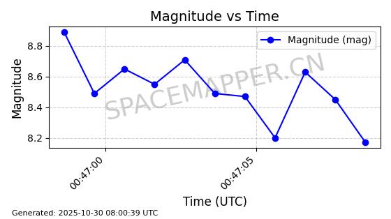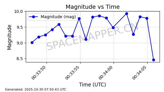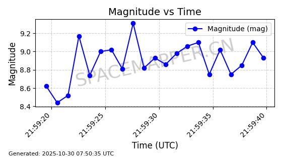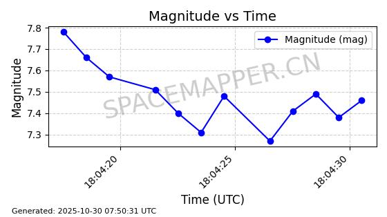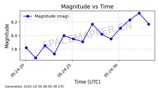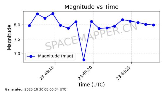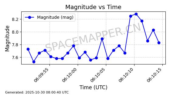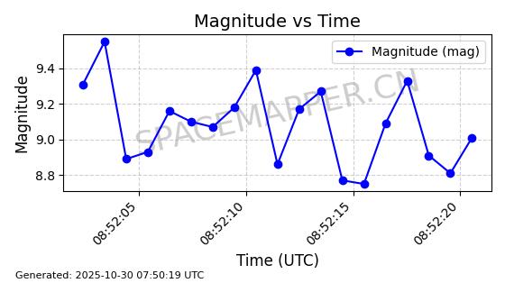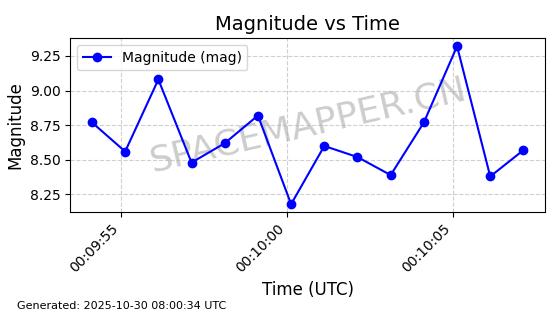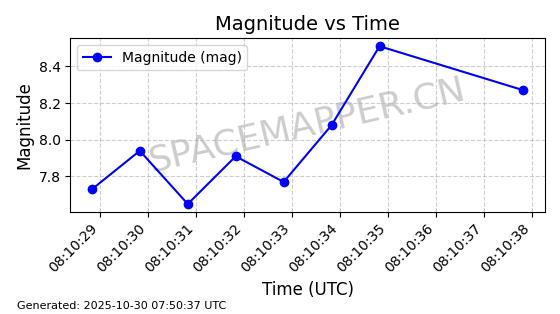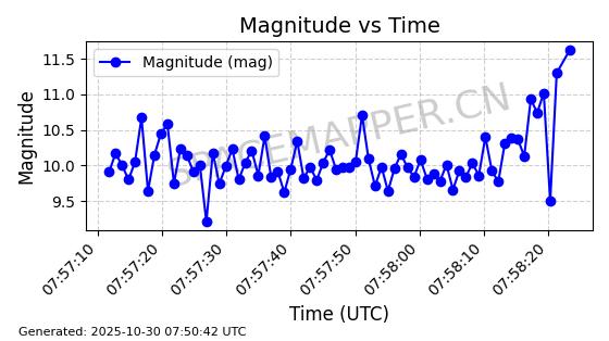 | ONEWEB-0629 | 55170 | 55170 | 2023-01-10 同日期轨道 2023-004AG 同批次轨道 | 在轨 | 109分钟 | 87.9114 | 1192.673 | 1194.773 | 0.0001386 | 2025-10-28 08:33:05 | ||