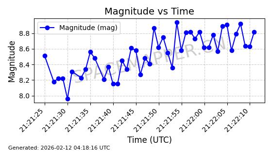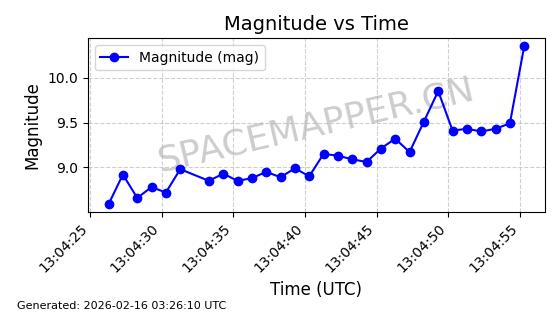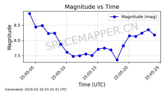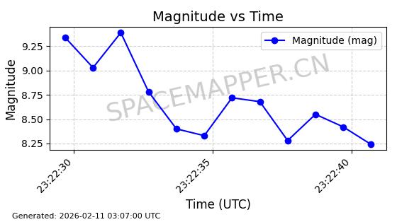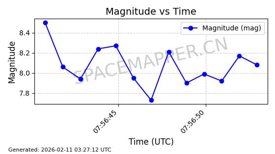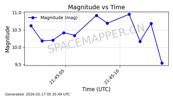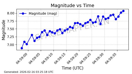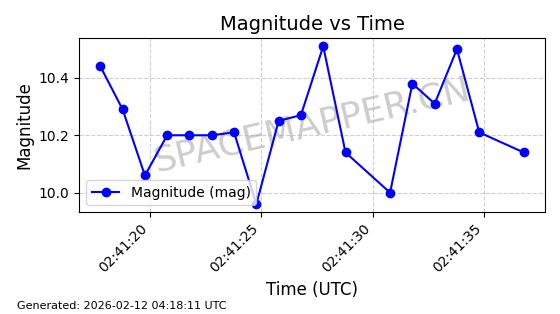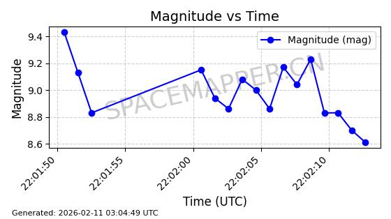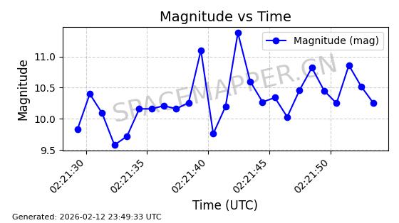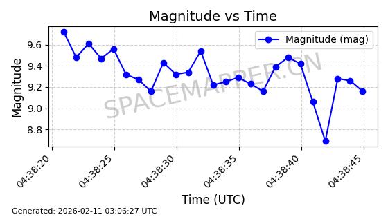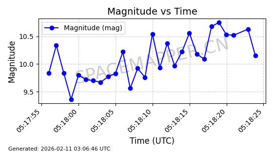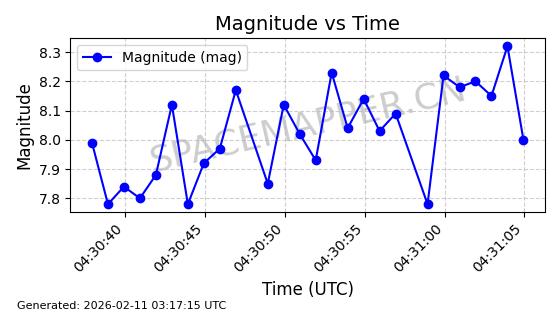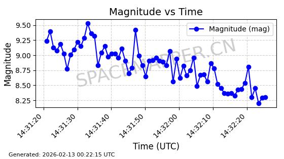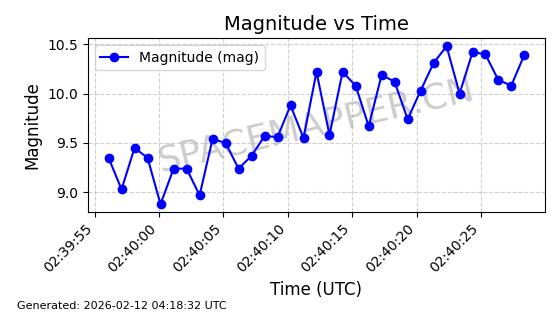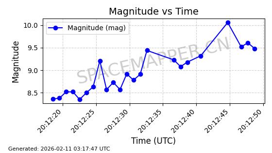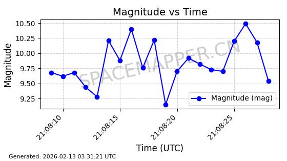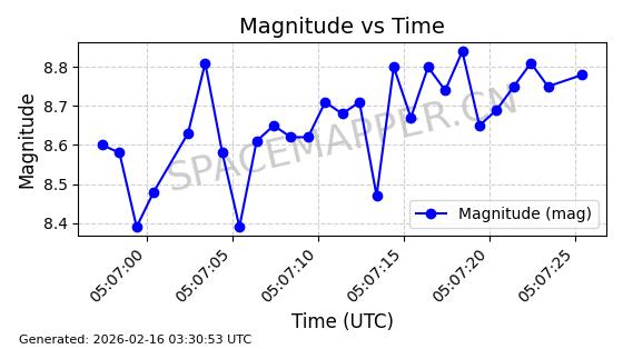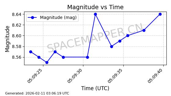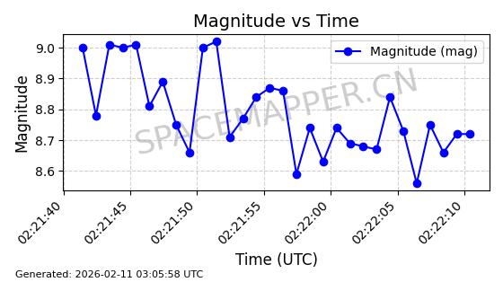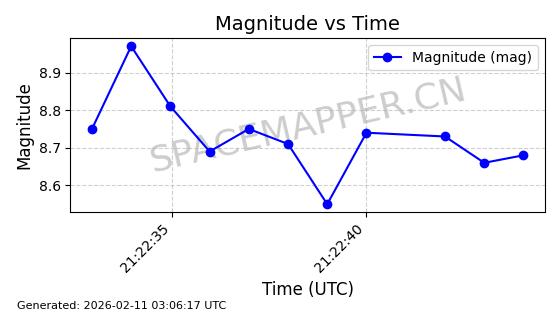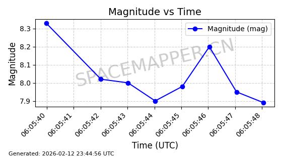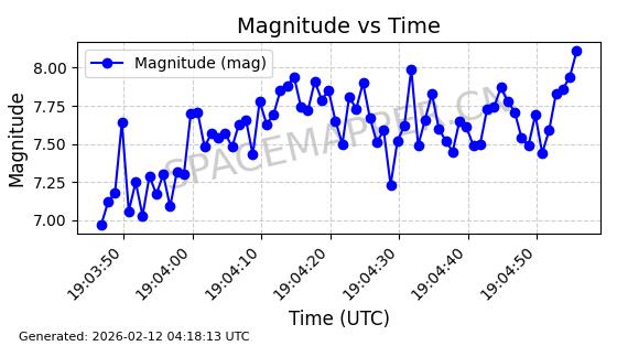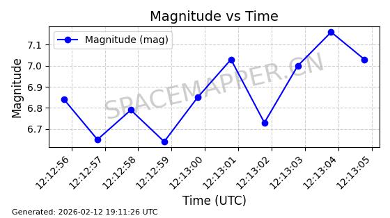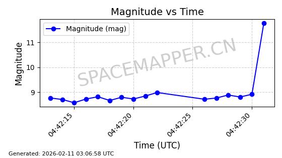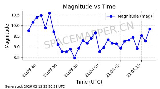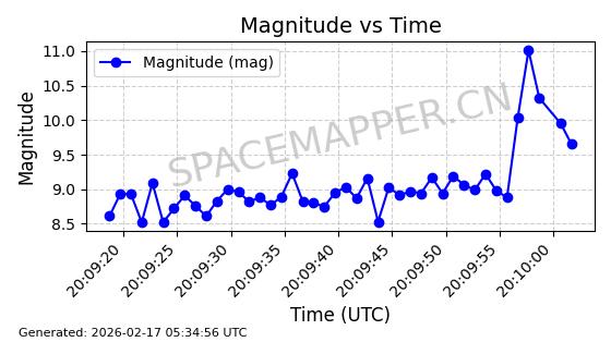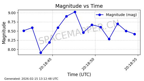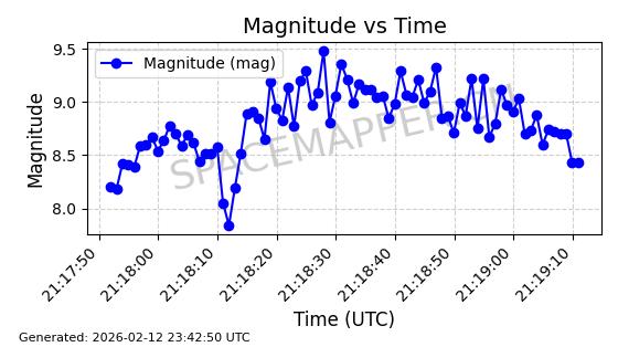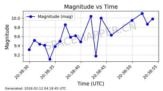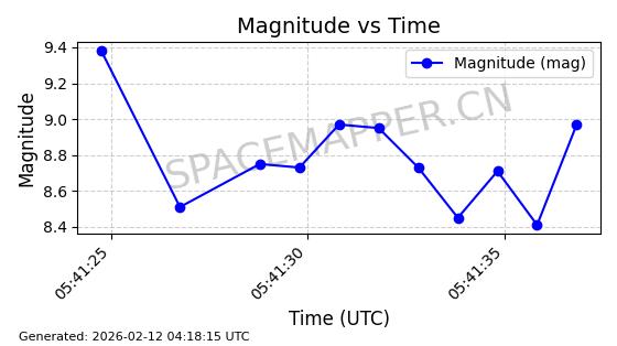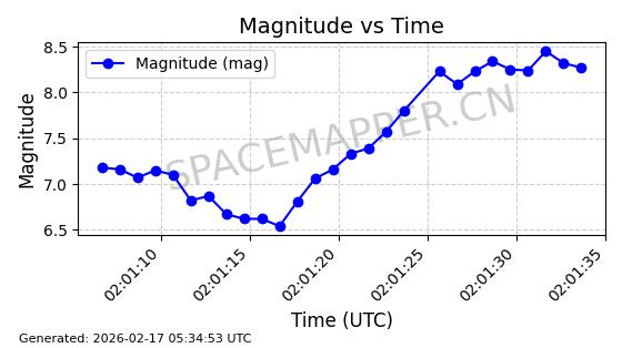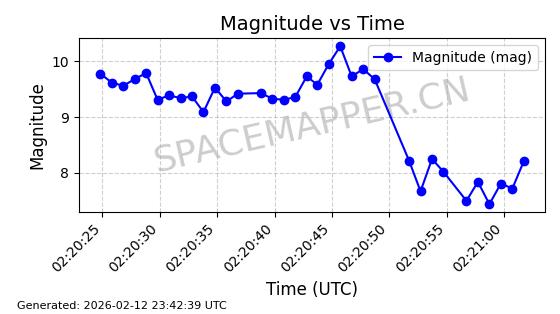 | ONEWEB-0659 | 54678 | 54678 | 2022-12-08 同日期轨道 2022-166AN 同批次轨道 | 在轨 | 109分钟 | 87.9177 | 1176.505 | 1179.011 | 0.0001657 | 2026-02-16 01:16:36 | ||