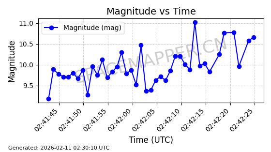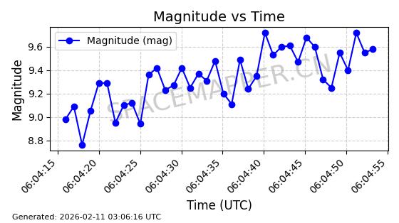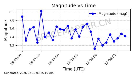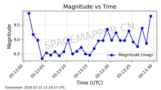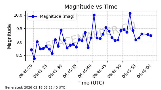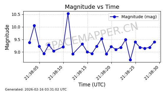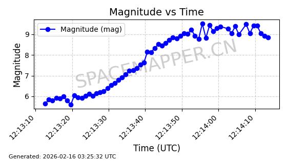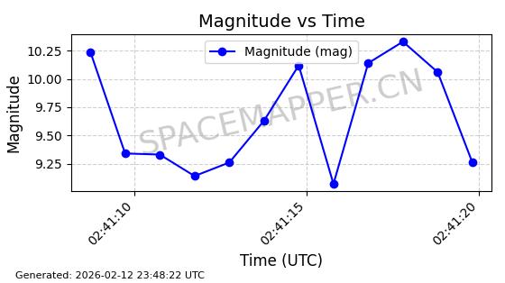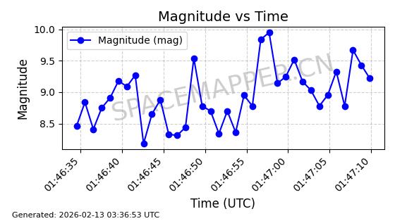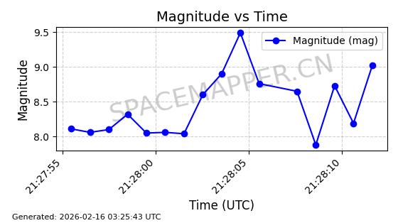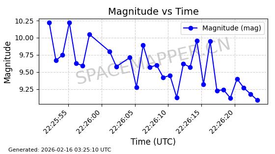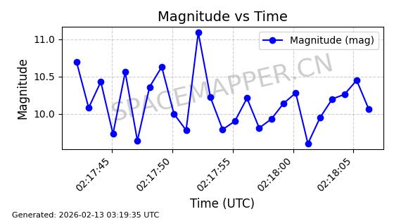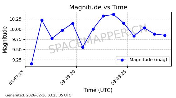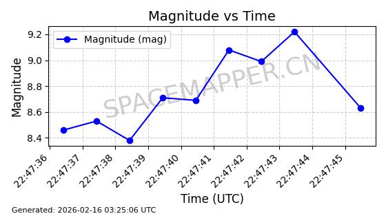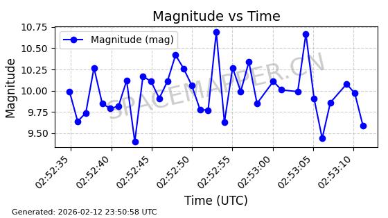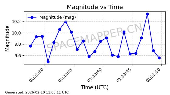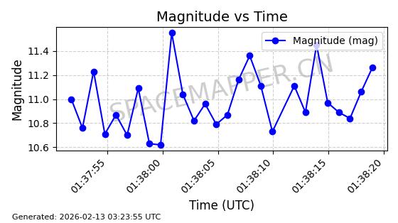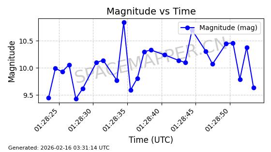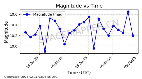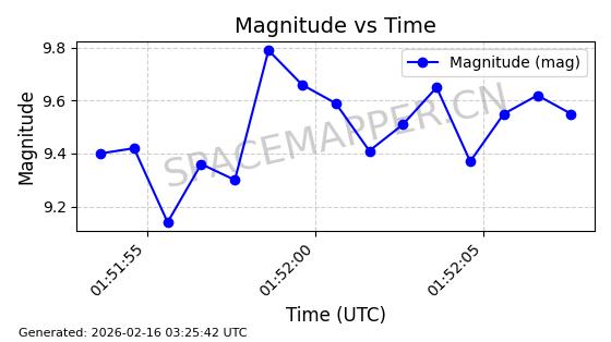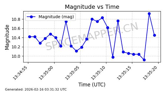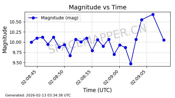 | ONEWEB-0603 | 54667 | 54667 | 2022-12-08 同日期轨道 2022-166AB 同批次轨道 | 在轨 | 109分钟 | 87.9187 | 1176.598 | 1178.904 | 0.0001525 | 2026-02-16 02:49:00 | ||