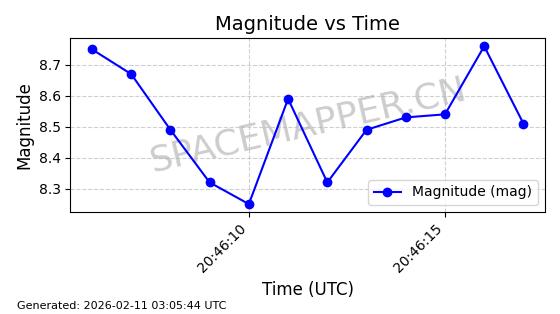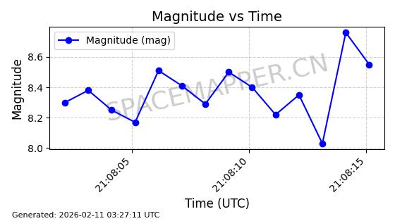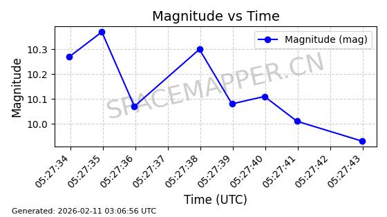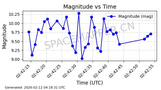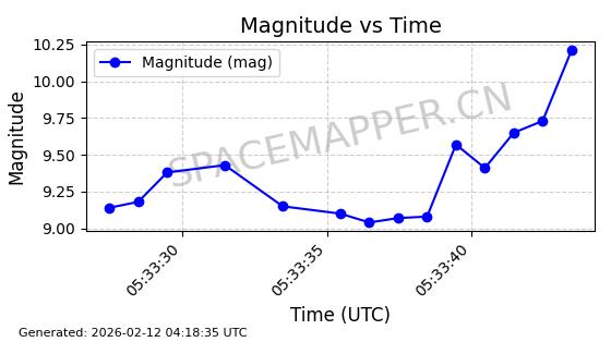 | ONEWEB-0611 | 54674 | 54674 | 2022-12-08 同日期轨道 2022-166AJ 同批次轨道 | 在轨 | 109分钟 | 87.9175 | 1176.538 | 1179.008 | 0.0001634 | 2026-02-16 03:26:57 | ||