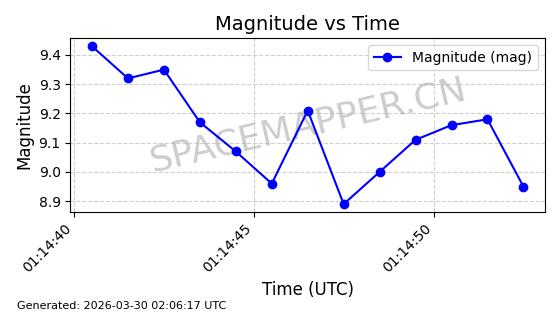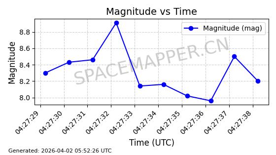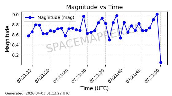 | ONEWEB-0692 | 61600 | 61600 | 2024-10-20 同日期轨道 2024-188G 同批次轨道 | 在轨 | 110分钟 | 87.8901 | 1215.848 | 1219.516 | 0.0002414 | 2026-04-03 07:01:36 | ||