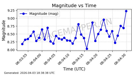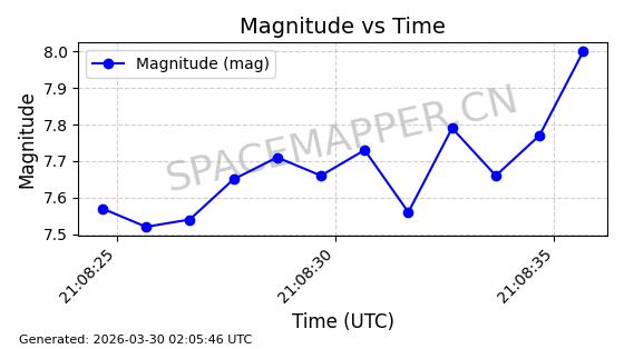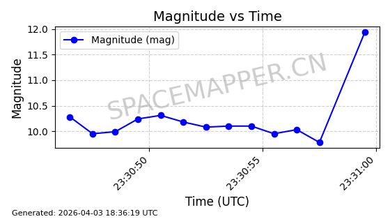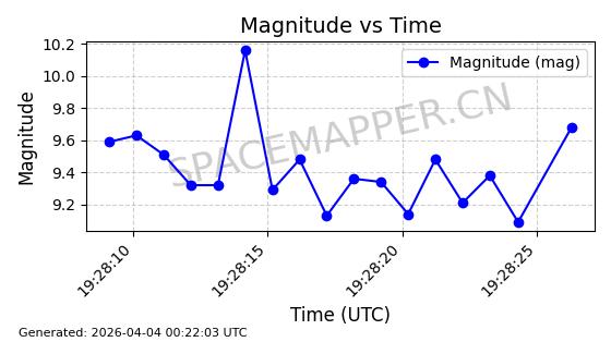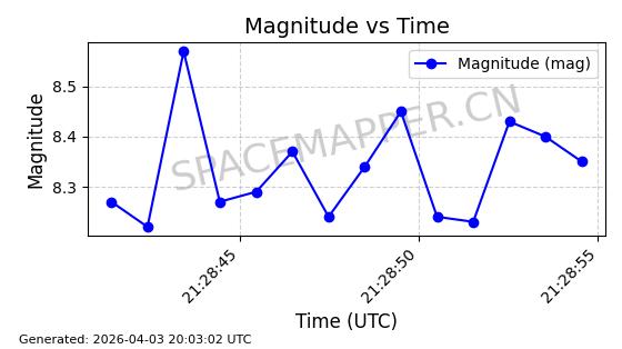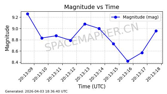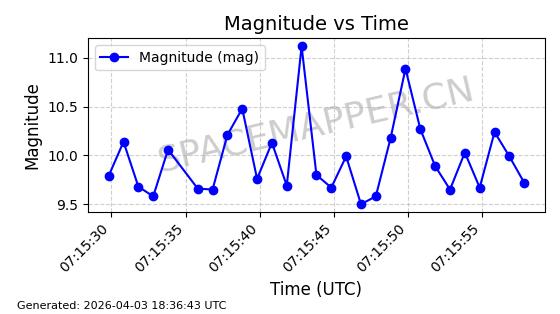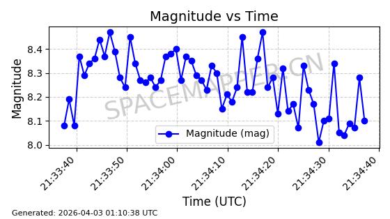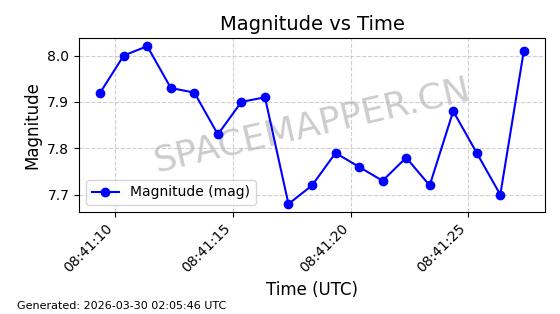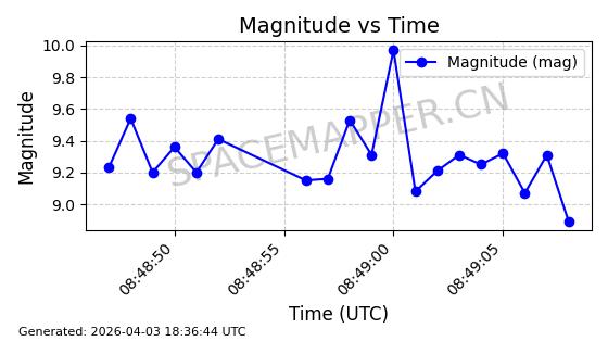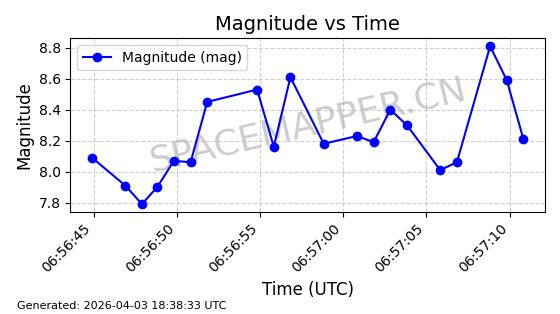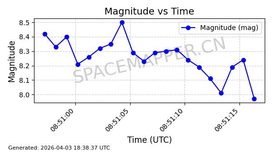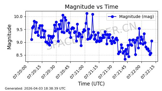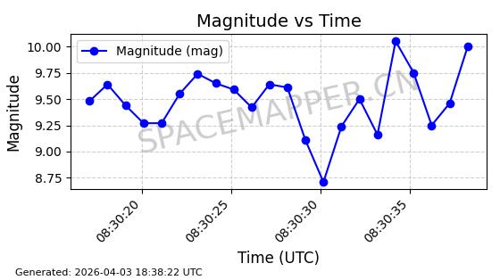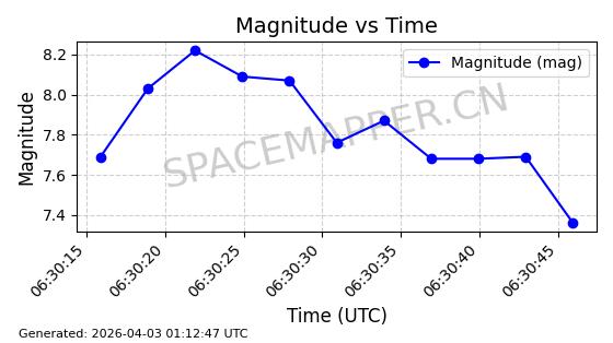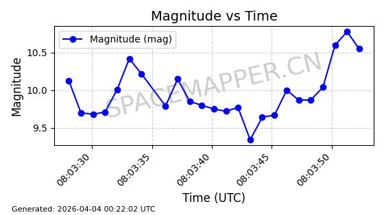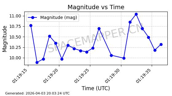 | ONEWEB-0635 | 56076 | 56076 | 2023-03-26 同日期轨道 2023-043AG 同批次轨道 | 在轨 | 109分钟 | 87.8934 | 1200.491 | 1203.041 | 0.0001682 | 2026-04-03 05:27:50 | ||