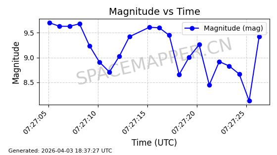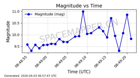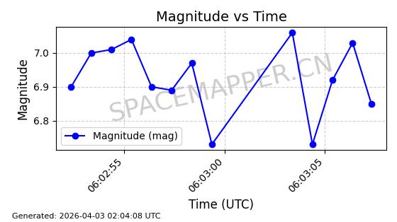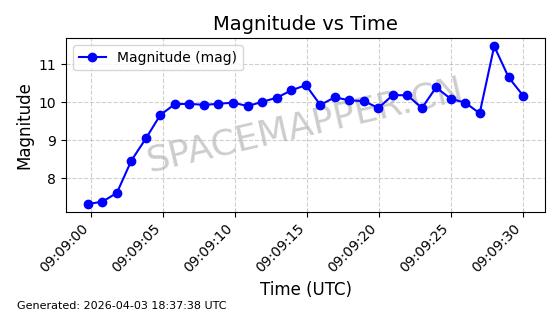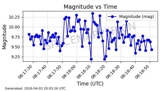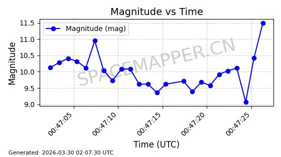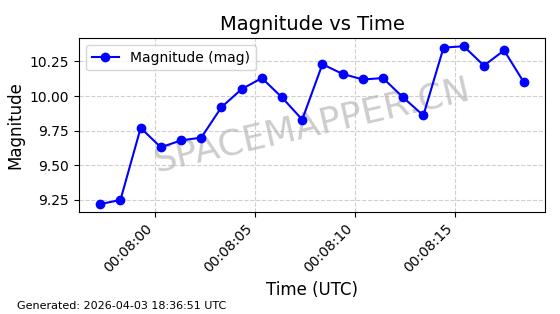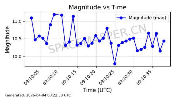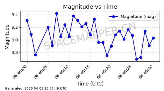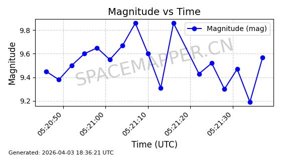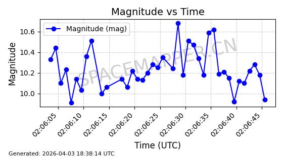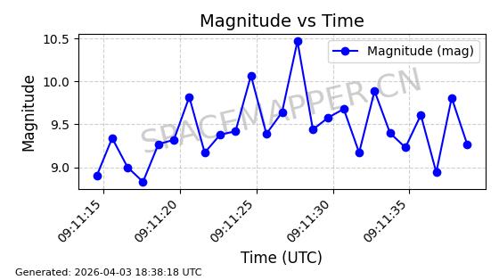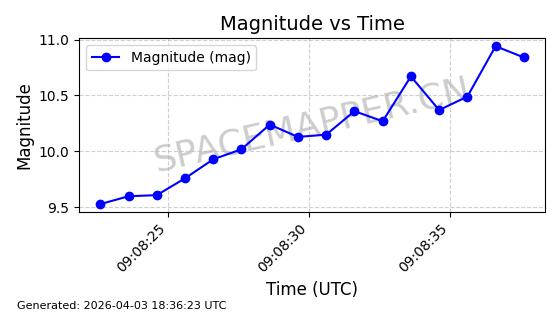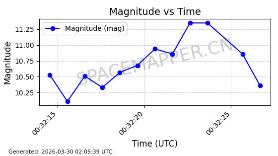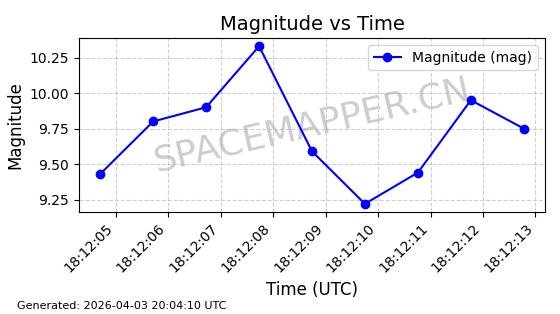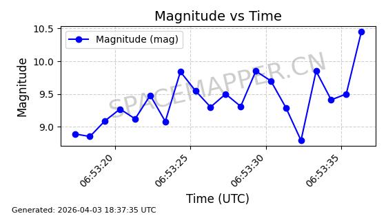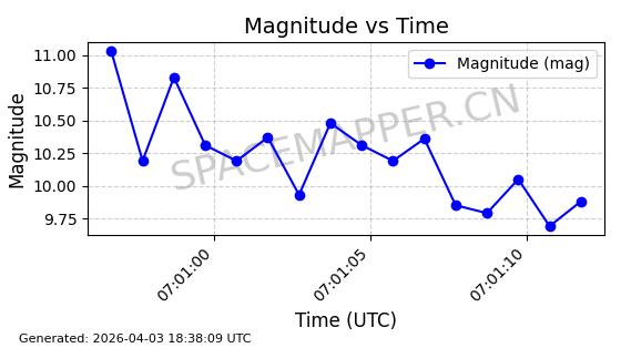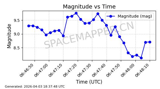 | ONEWEB-0609 | 56070 | 56070 | 2023-03-26 同日期轨道 2023-043AA 同批次轨道 | 在轨 | 109分钟 | 87.8934 | 1198.726 | 1201.334 | 0.0001720 | 2026-04-03 06:23:31 | ||