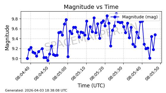 | ONEWEB-0702 | 61608 | 61608 | 2024-10-20 同日期轨道 2024-188Q 同批次轨道 | 在轨 | 110分钟 | 87.8926 | 1215.775 | 1219.597 | 0.0002515 | 2026-04-03 05:58:08 | ||
