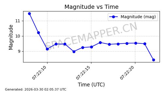 | 卫星名称 | AOE ID | NORAD ID | 发射日期 国际编号 | 在轨状态 | 轨道周期 | 轨道倾角 (度) | 近地点 (Km) | 远地点 (Km) | 偏心率 | 更新时间 (UTC) | 近期光变曲线 | 服务 |
