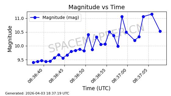 | ONEWEB-0637 | 56078 | 56078 | 2023-03-26 同日期轨道 2023-043AJ 同批次轨道 | 在轨 | 109分钟 | 87.8928 | 1200.722 | 1202.802 | 0.0001372 | 2026-04-03 05:07:18 | ||