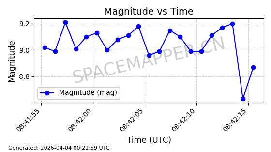 | ONEWEB-0704 | 61609 | 61609 | 2024-10-20 同日期轨道 2024-188R 同批次轨道 | 在轨 | 110分钟 | 87.8837 | 1219.884 | 1223.532 | 0.0002399 | 2026-04-03 05:44:18 | ||
